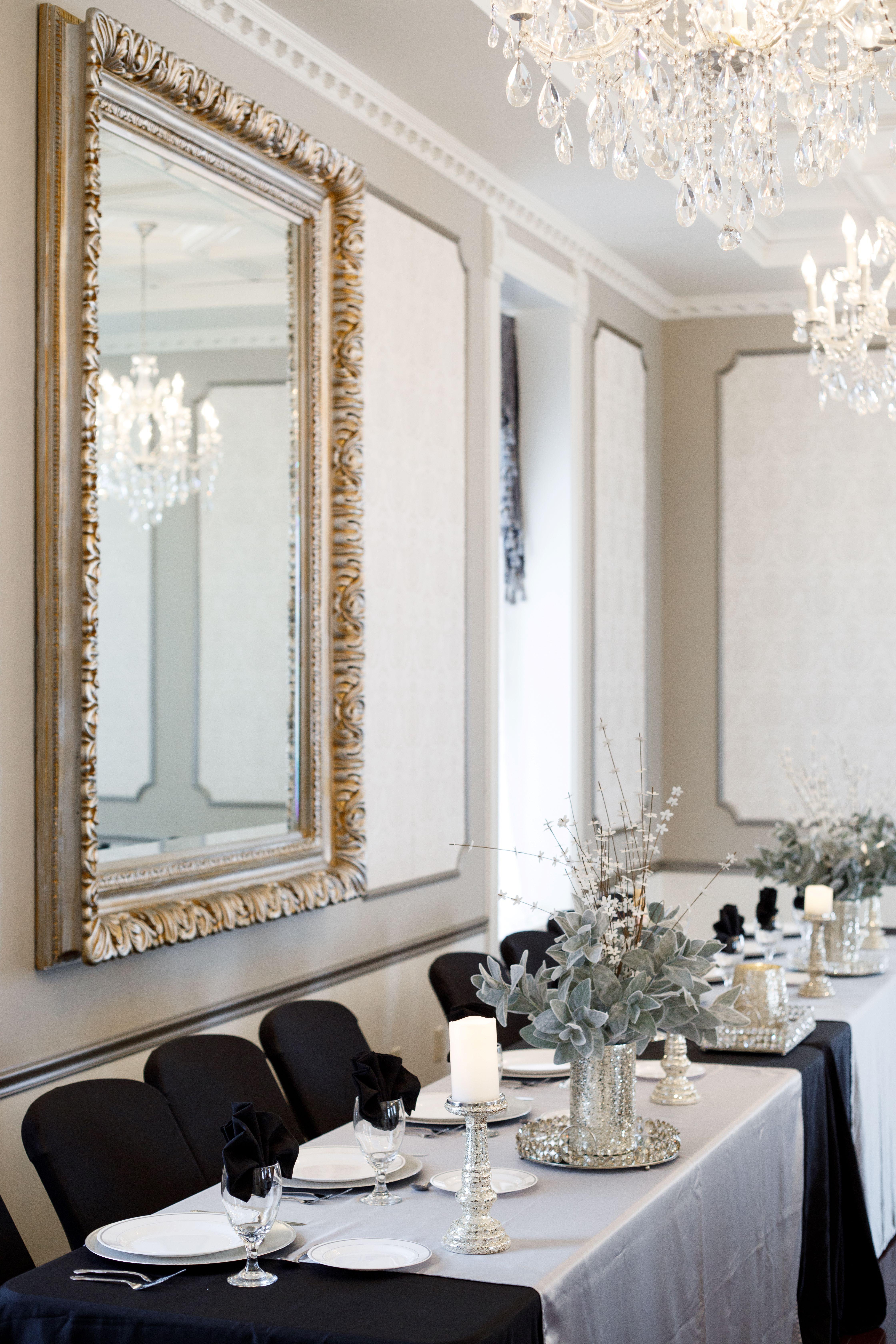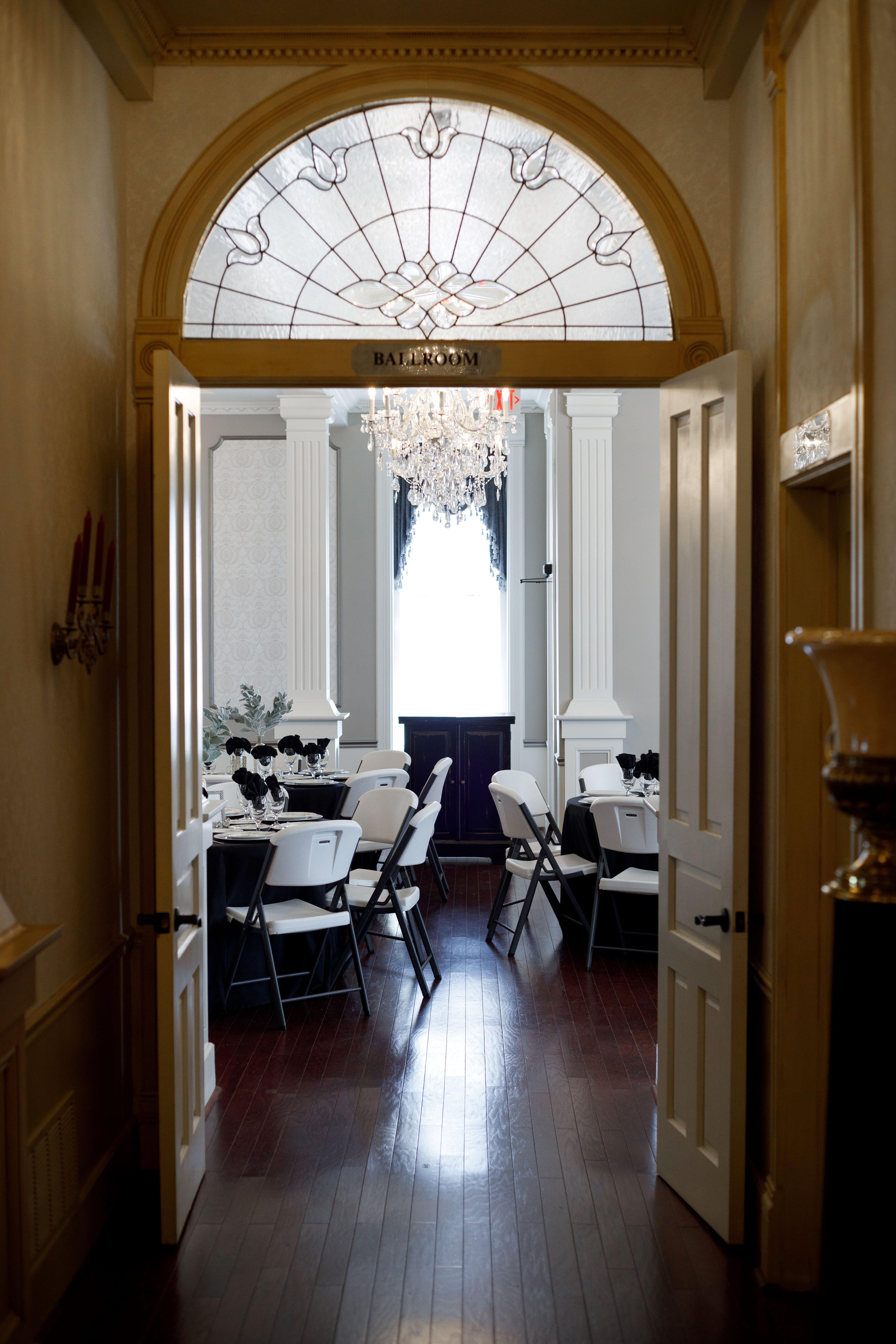 Our beautiful ballroom is decorated in the elaborate Victorian era decor of the late 1800s and is perfect for weddings, elopements, special celebrations such as wedding showers, and bridal showers. Hues of warm gray, brilliant white and a shimmering pewter make it easy to coordinate your special event decor