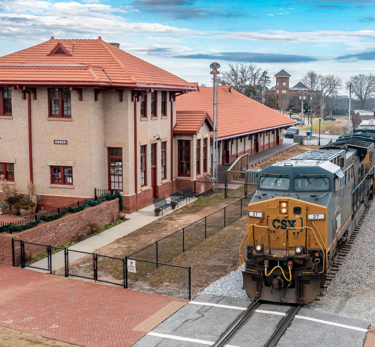 Historic Greer Depot is the perfect setting for your “event”. It is one of the most authentically restored railroad depots to be transformed into an event venue in South Carolina. When looking for a unique place to make memories that will last a lifetime, look no further than Historic Greer Depot! As you enter the main event space, your eye is drawn upwards to the vaulted ceilings, wooden beams, café lighting, exposed brick, and below to the 112-year-old rustic pine flooring. We have modern ADA-accessible restrooms, and a large catering kitchen. An outdoor rose garden is also available for an intimate photography session, bridal or baby shower or cocktail hour for a wedding. We have attentive staff that creates a no stress event for you and your guests.