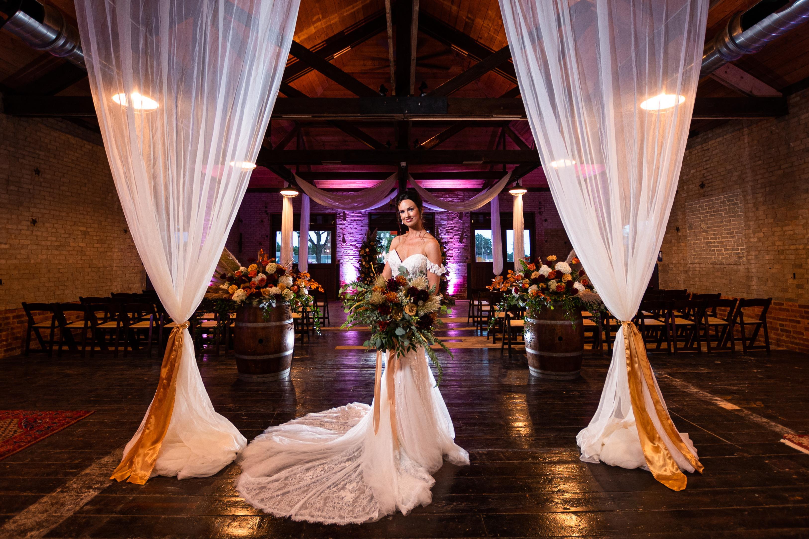 -Hexagon wedding arch -dimmable lighting -optional floral chandeliers -photo area with beautiful velvet couch -ADA accessible entrance and restrooms -historical baggage cart -decor -catering kitchen-ice machine, commercial refrigerator, sinks, commercial tea/coffee, drink dispensers, large ice bucket -event director
