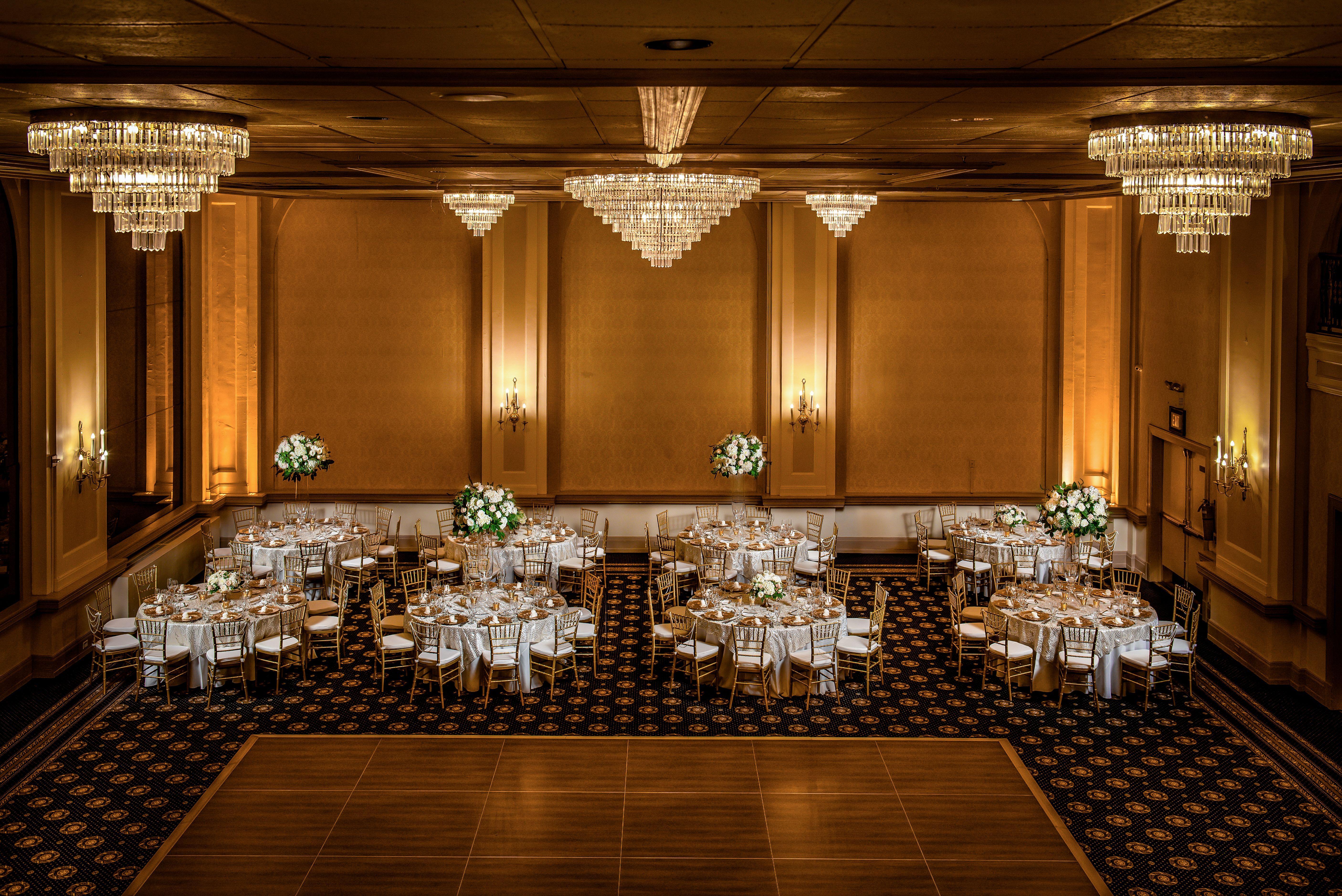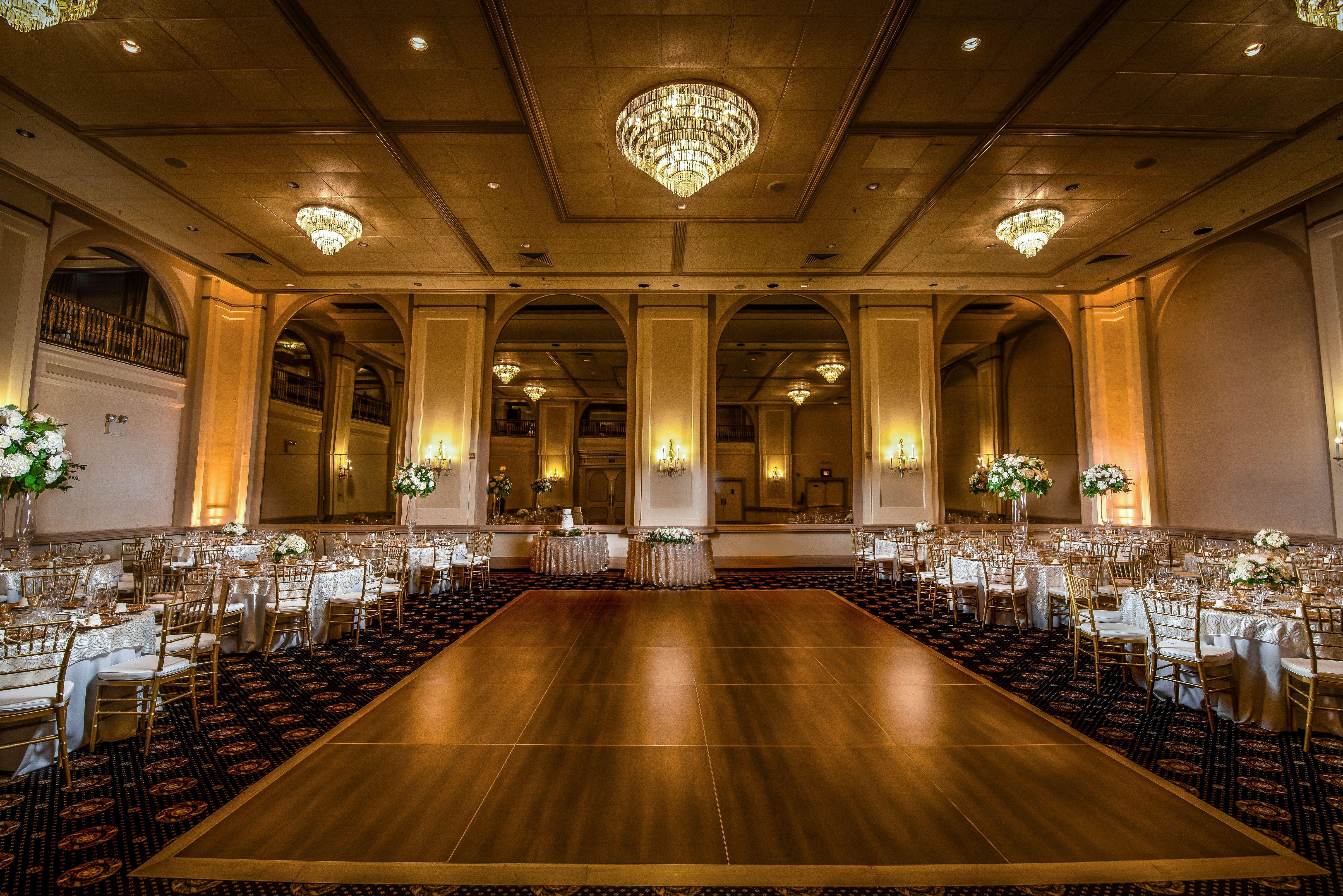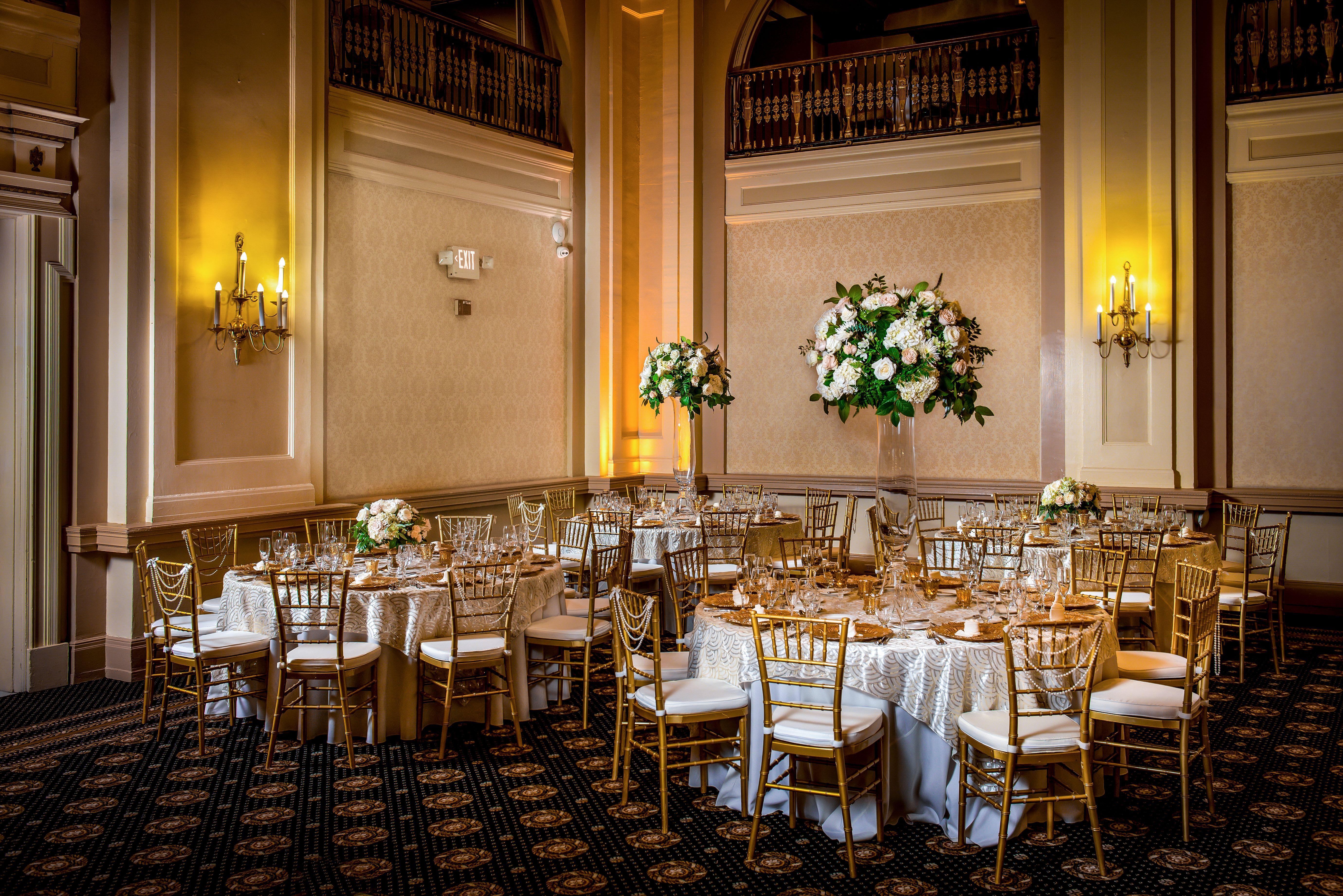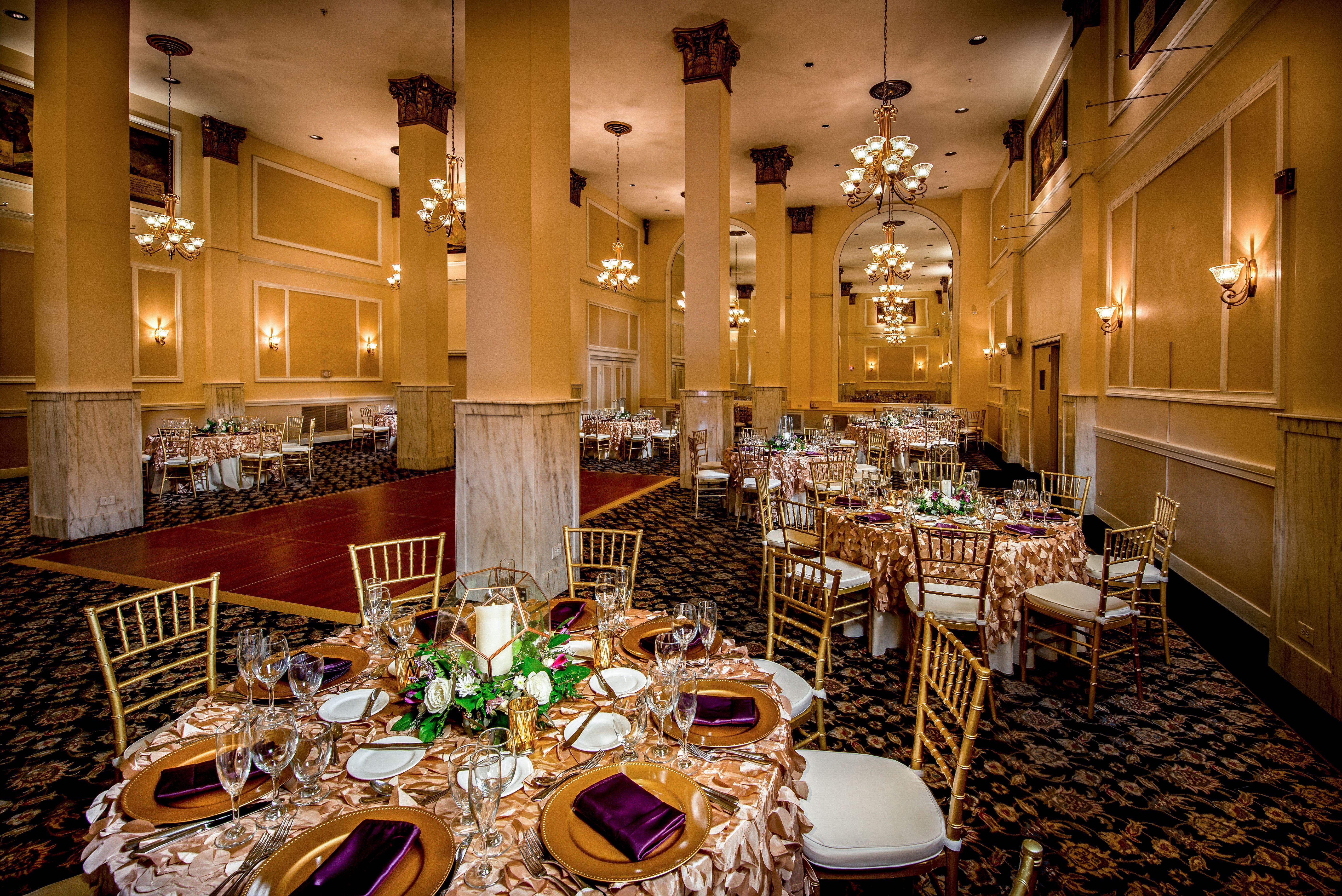 Historic Hotel Bethlehem is a wedding venue located in Bethlehem, PA. The hotel is nestled in the heart of the Historic National Landmark District and situated on Bethlehem’s Main Street. Quaint shops, including the world’s oldest continuously operating bookstore and numerous dining options are within an easy walk. Envision your fantasy ‘I Do’ happening as you come flowing down a marble staircase into our Mural Ballroom and the convenience of having all your wedding events on one property. The Mural Ballroom can host as many as 130 guests for all aspects of your celebration and features gilded Corinthian columns and beautiful painted murals. For larger affairs of up to 250, the Grand Ballroom will be at your disposal. This magnificent ballroom is draped with glittering crystal chandeliers and is equipped with romantic balconies and floor-to-ceiling mirrors. Historic Hotel Bethlehem offers a variety of wedding packages including a complimentary premier room accommodations.