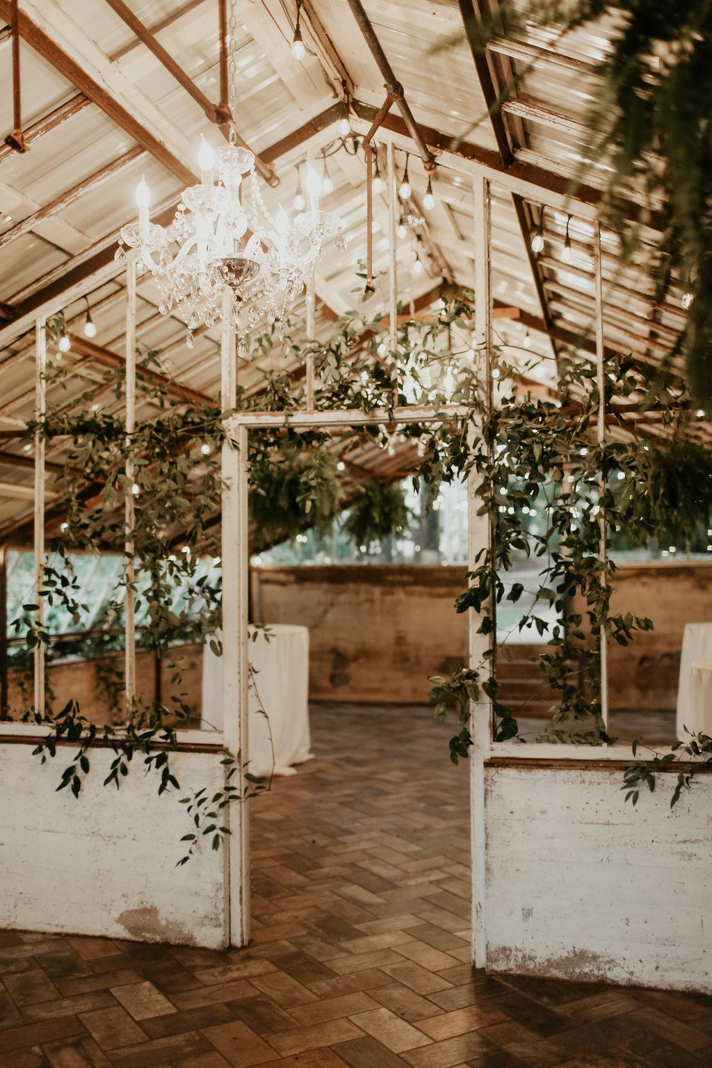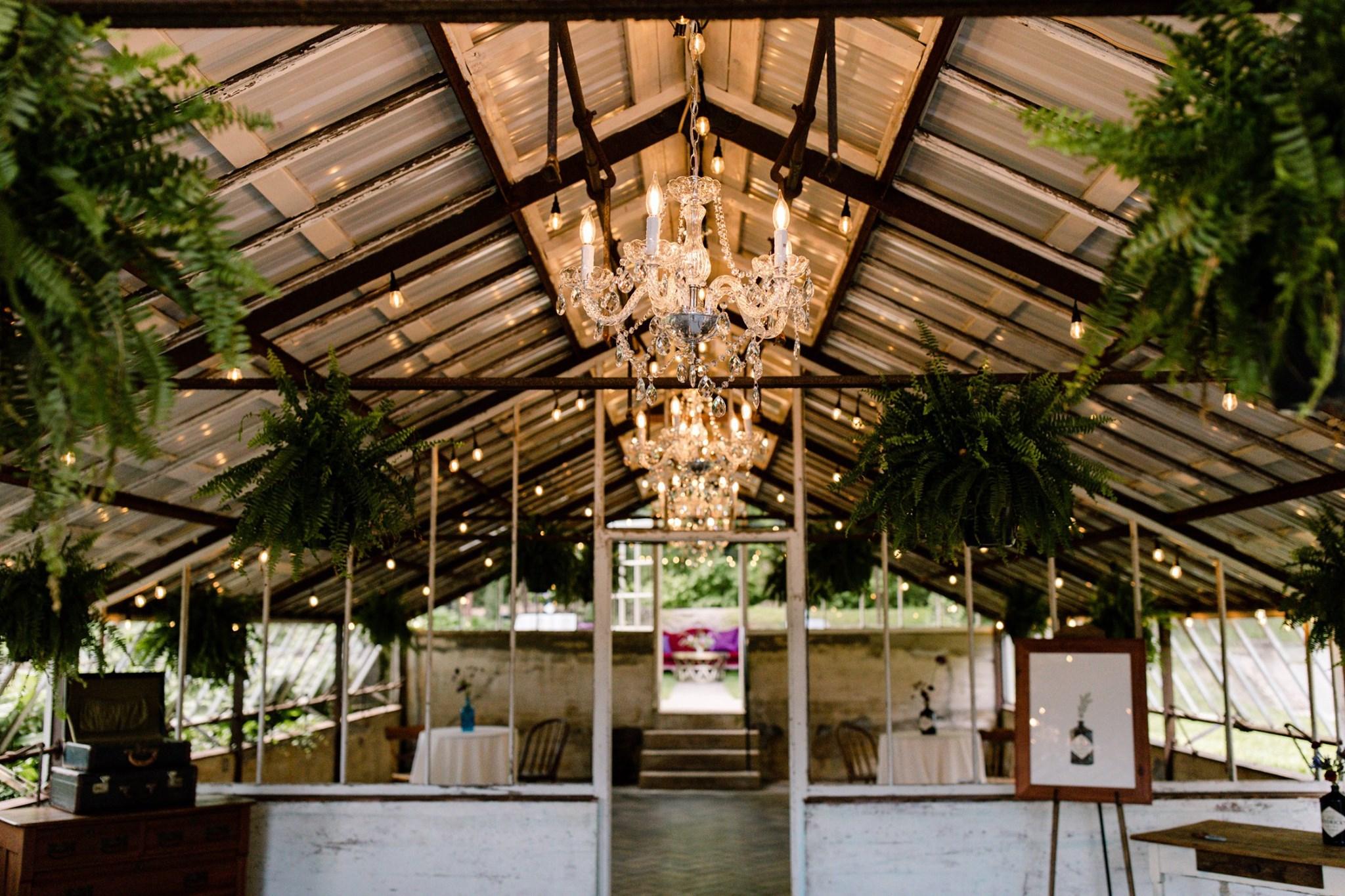 The gem of Historic Shady Lane - built in 1890 by Lord & Burnham, the glass and stone greenhouse is the setting for ceremonies and cocktail hours alike. Adorned with crystal chandeliers and twinkling white lights, the greenhouse is awaiting you and your guests.