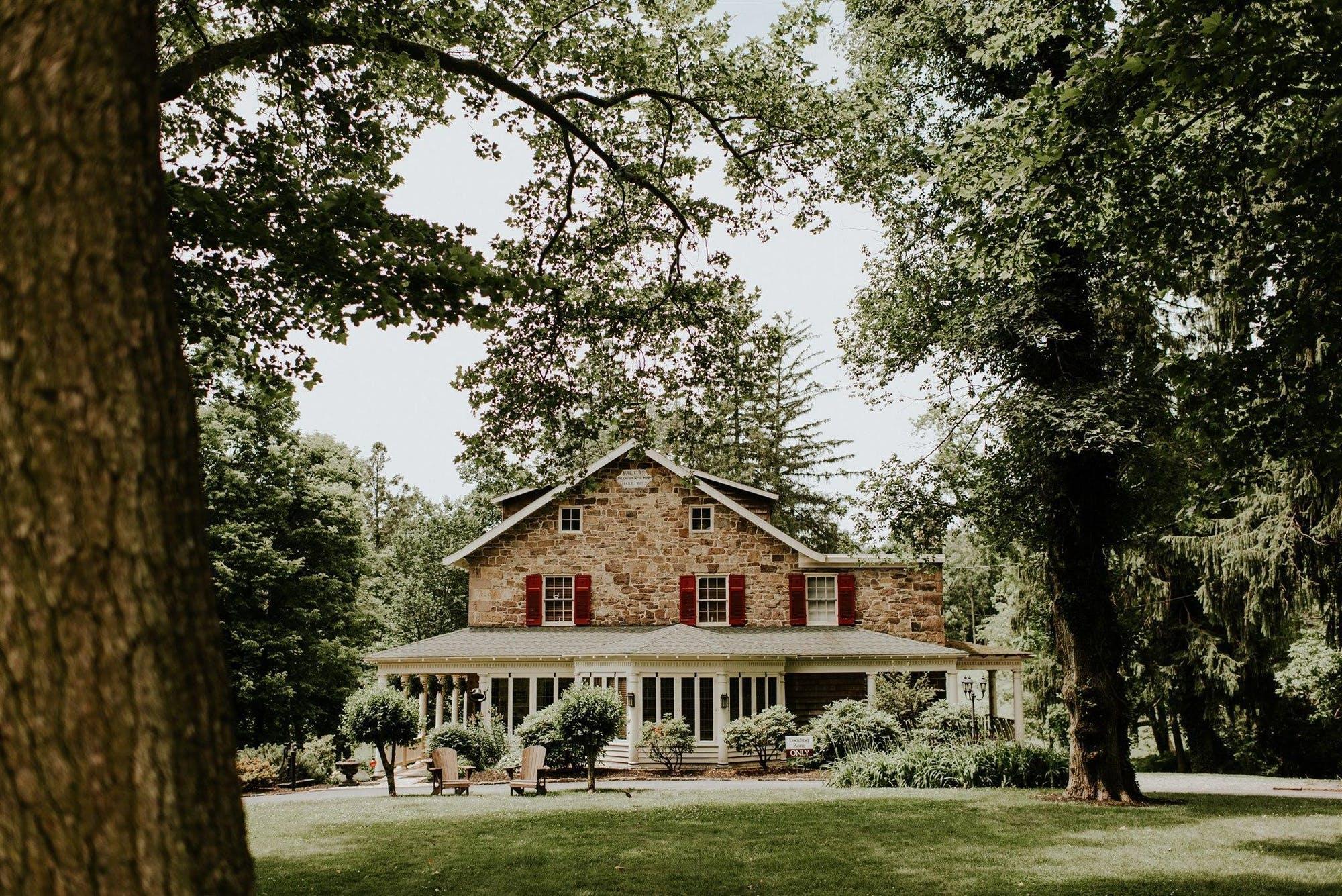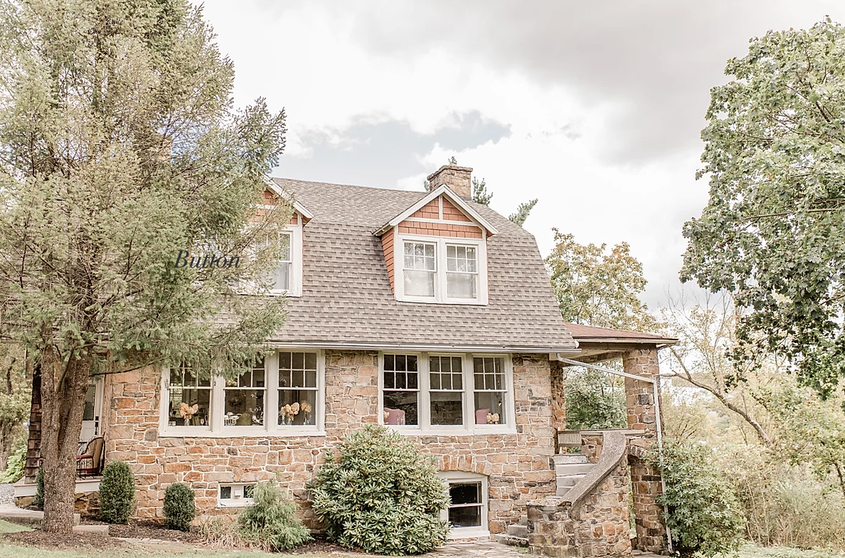 Built in 1825 by Jacob and Anne Hake, which you will see engraved on the front of the house, this stunning stone and wooden house hosts our den, one of the estate's wedding party suites. The house makes for a stunning backdrop for rose garden ceremonies and portraits with the 19th century stonework.