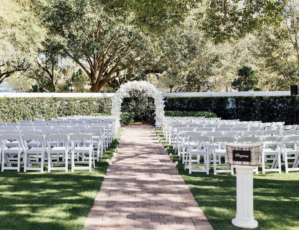 - White padded Folding Chairs - Garden turf for the perfect pictures - Outdoor bar Option - Wedding Arches - Day of Coordinator - High Top Tables - Lounge Furniture (rentals) - Valet Parking - Custom Floor plan - Custom Timeline - First Kiss Confetti Cannon (optional)