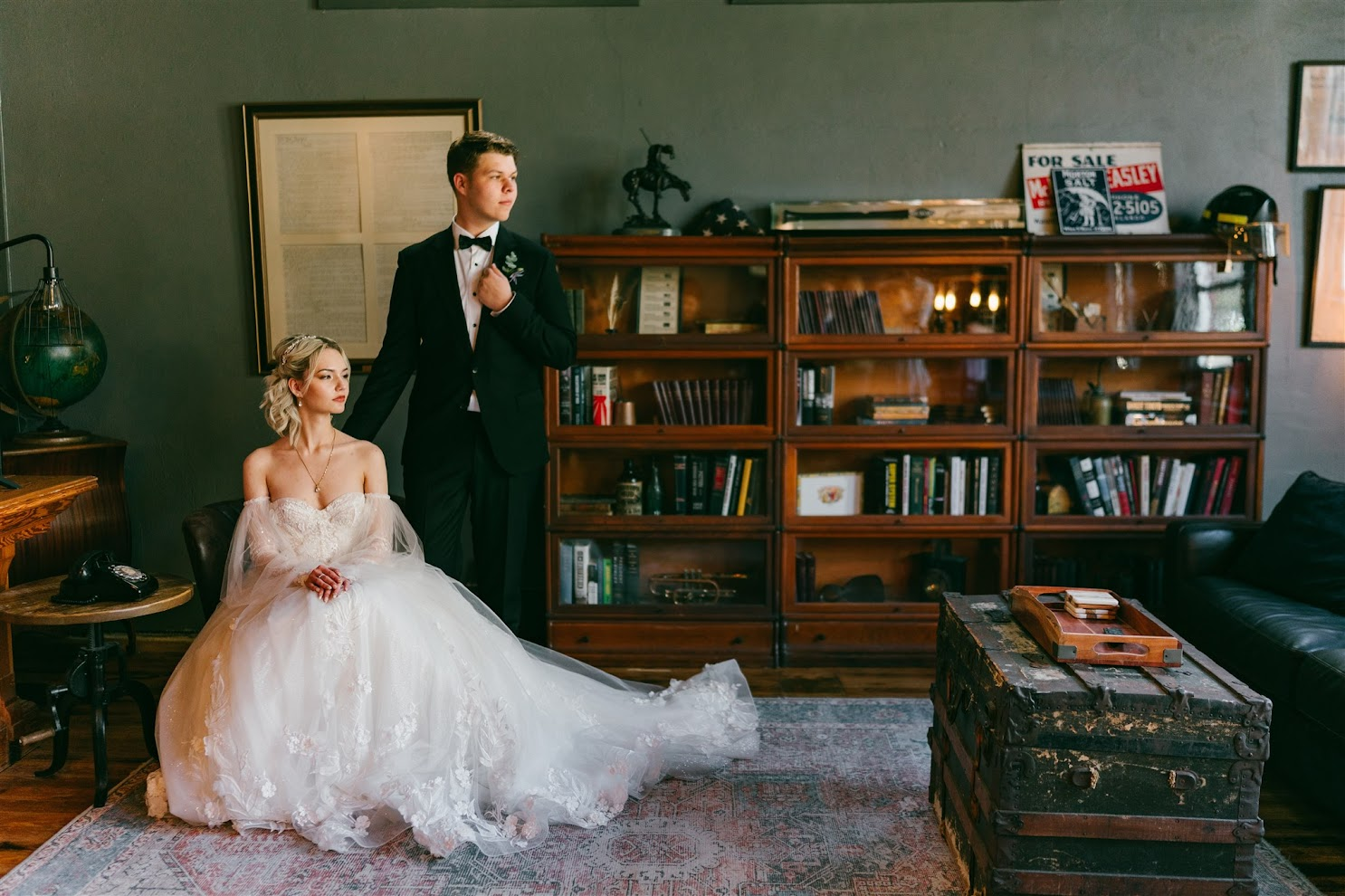 The Venue 1902 Library is Venue 1902's newest space designed as a retreat for the groom and his guys. With TVs, a poker table, and billiards, this space has it all. It even doubles as an amazing photo backdrop for moody portraits of the newlyweds or wedding party shots! The Library is included in the 1902 Package but can be added as an amenity to any of our other packages.