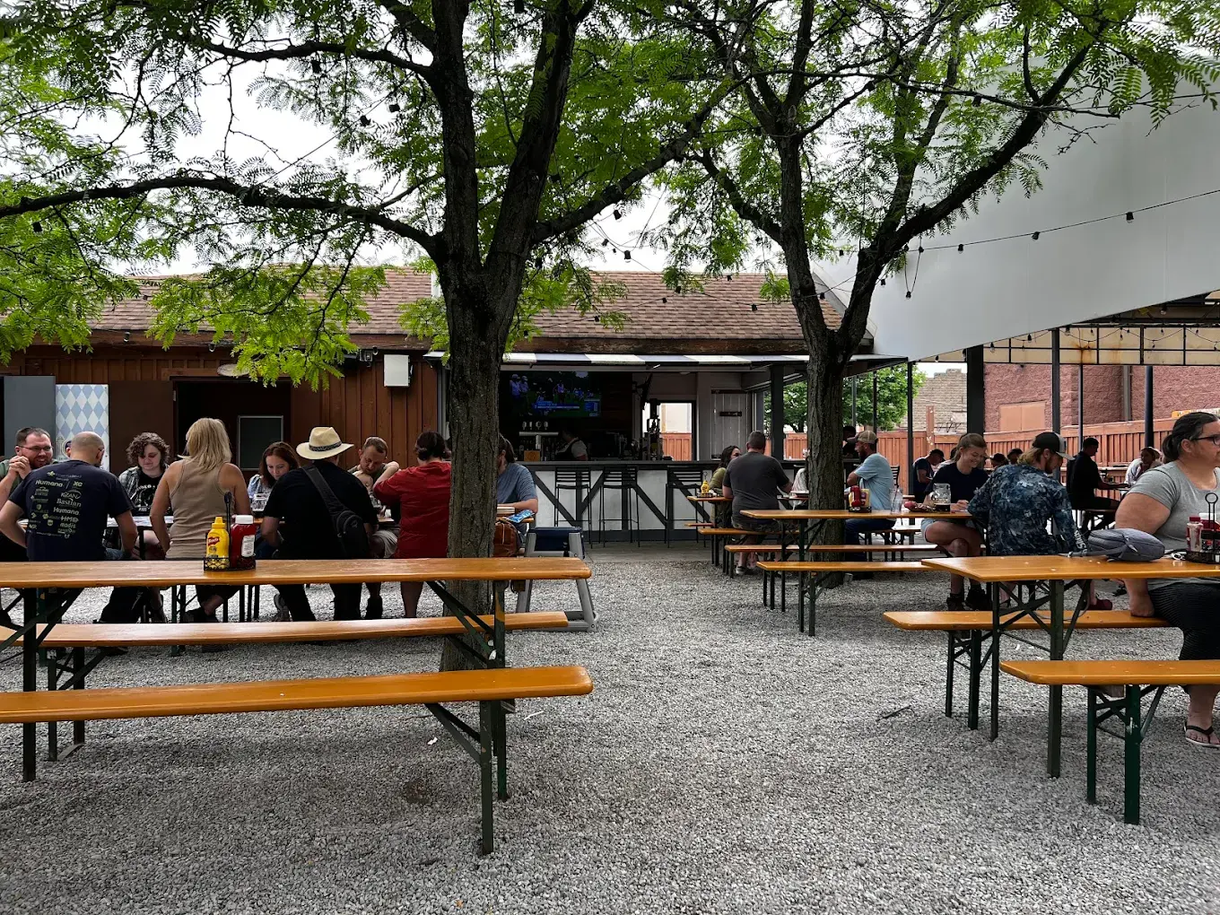 Hofbräuhaus Newport features a variety of spaces to accommodate your celebration. The Main Dining Hall provides a vibrant and festive atmosphere with its classic long wooden tables and benches, perfect for a large, communal-style gathering. The outdoor Biergarten offers a charming open-air option, with plenty of seating under the shade of mature trees and large umbrellas. Inside, our smaller, traditionally decorated rooms provide a more intimate setting for a relaxed and cozy get-together. No matter the space, our venues can be arranged to create a customizable setting for a fun, festive celebration.