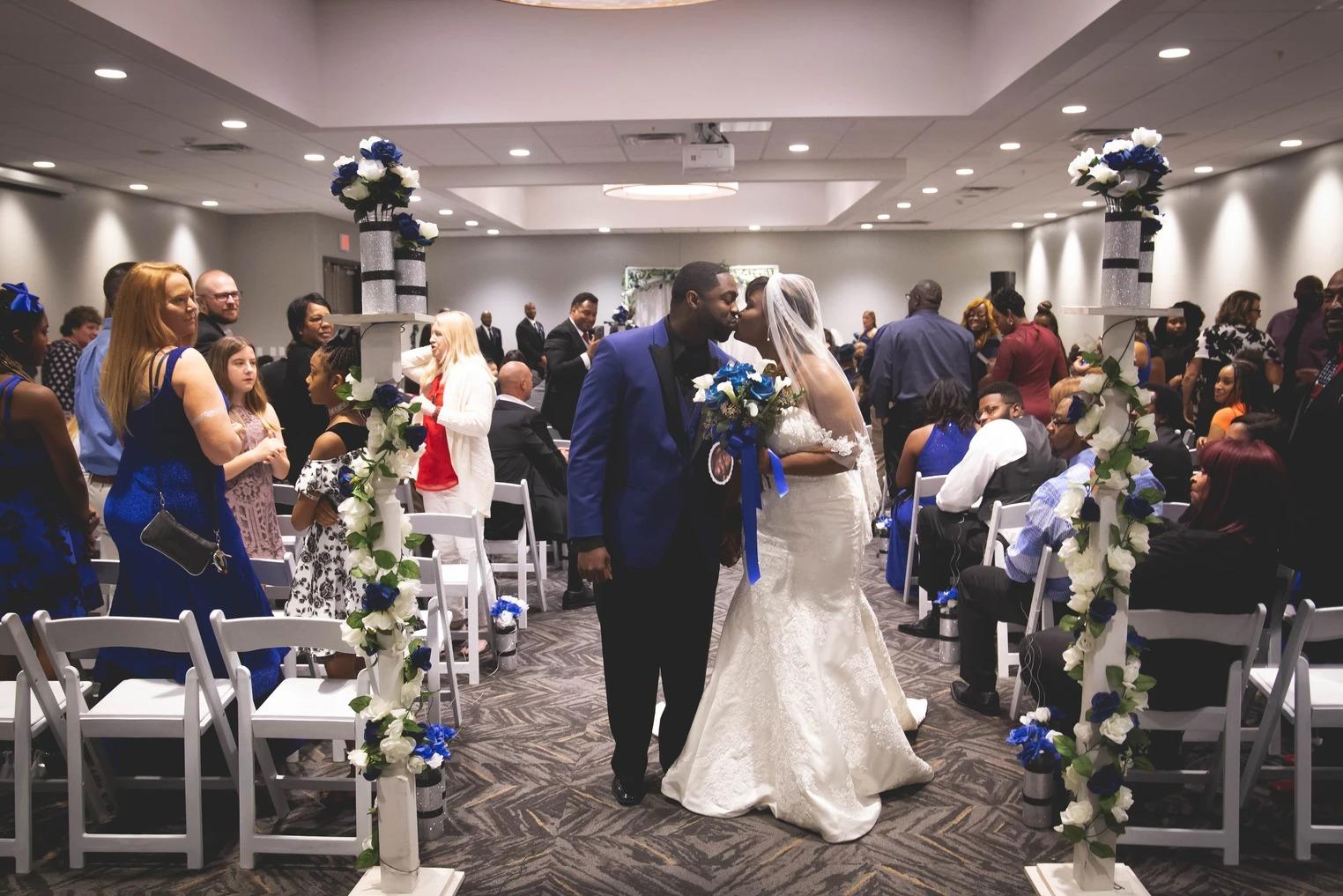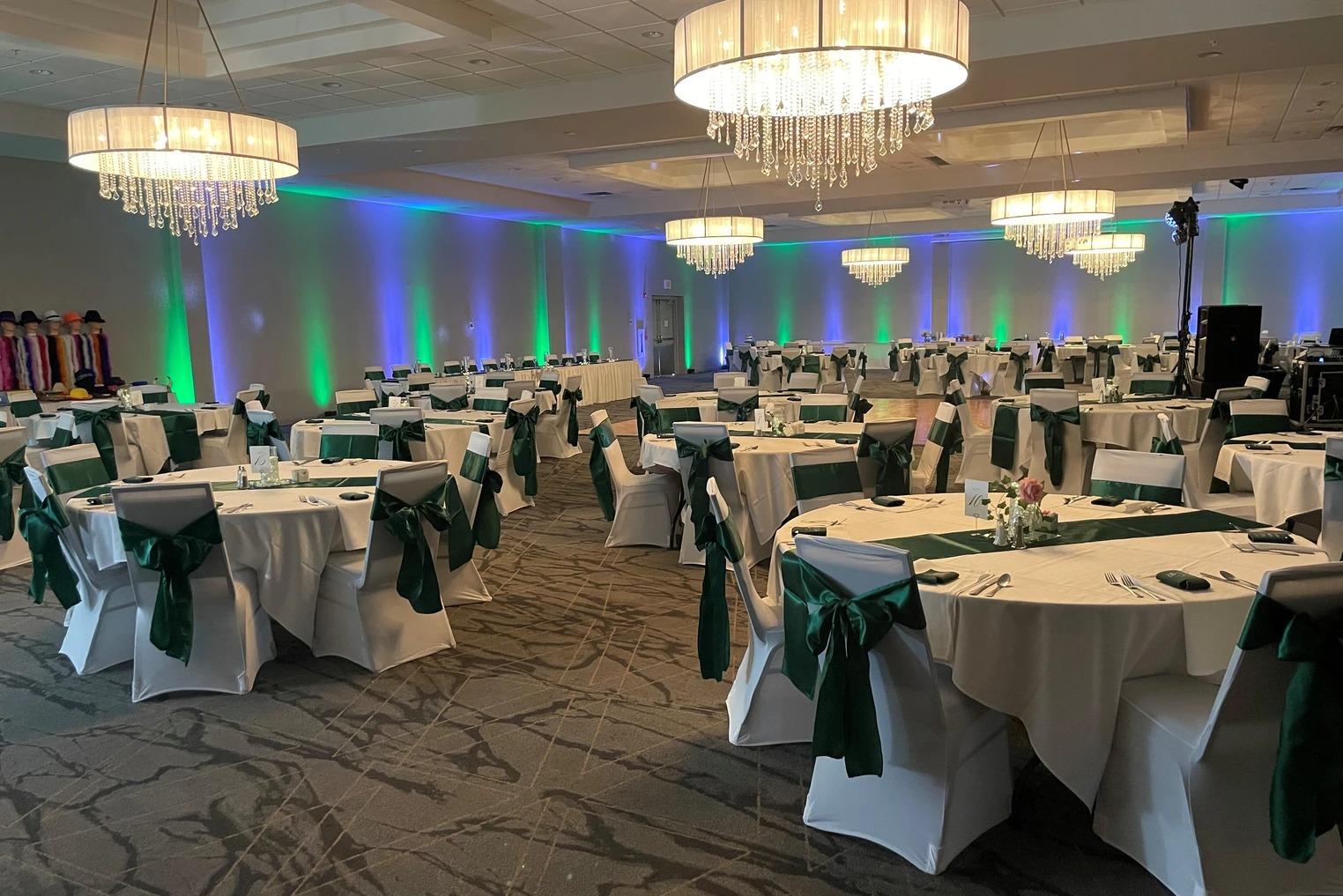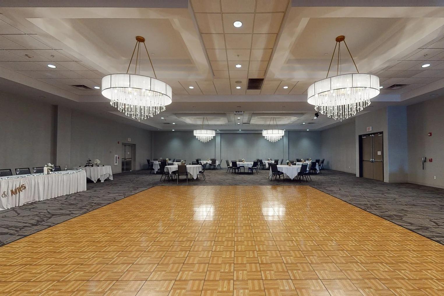 • Say 'I do' in our elegant Hickory Room or host a lavish reception in the White Oak Ballroom, accommodating up to 400 guests. Our professional team specializes in creating memorable weddings with exquisite detail and personalized service. • White Oak: Our largest meeting room with a capacity of 500 people is sure to be the best area for any special event. Set to impress with the modern décor and stunning chandeliers; this room is perfect for birthday parties, wedding receptions, larger conferences. • Our second largest room with a capacity of 300 people. Hickory Grove is a guest favorite for its modern AV and surround sound system. It is perfect for an early morning breakfast meeting, business lunch or even an evening dinner. • Evergreen can accommodate up to 50 people. Which is perfect to prepare for your big wedding the next day! • The smaller option of our meeting rooms is Cottonwood, which holds 40 people. This room is perfect for smaller meetings or light meal gatherings.