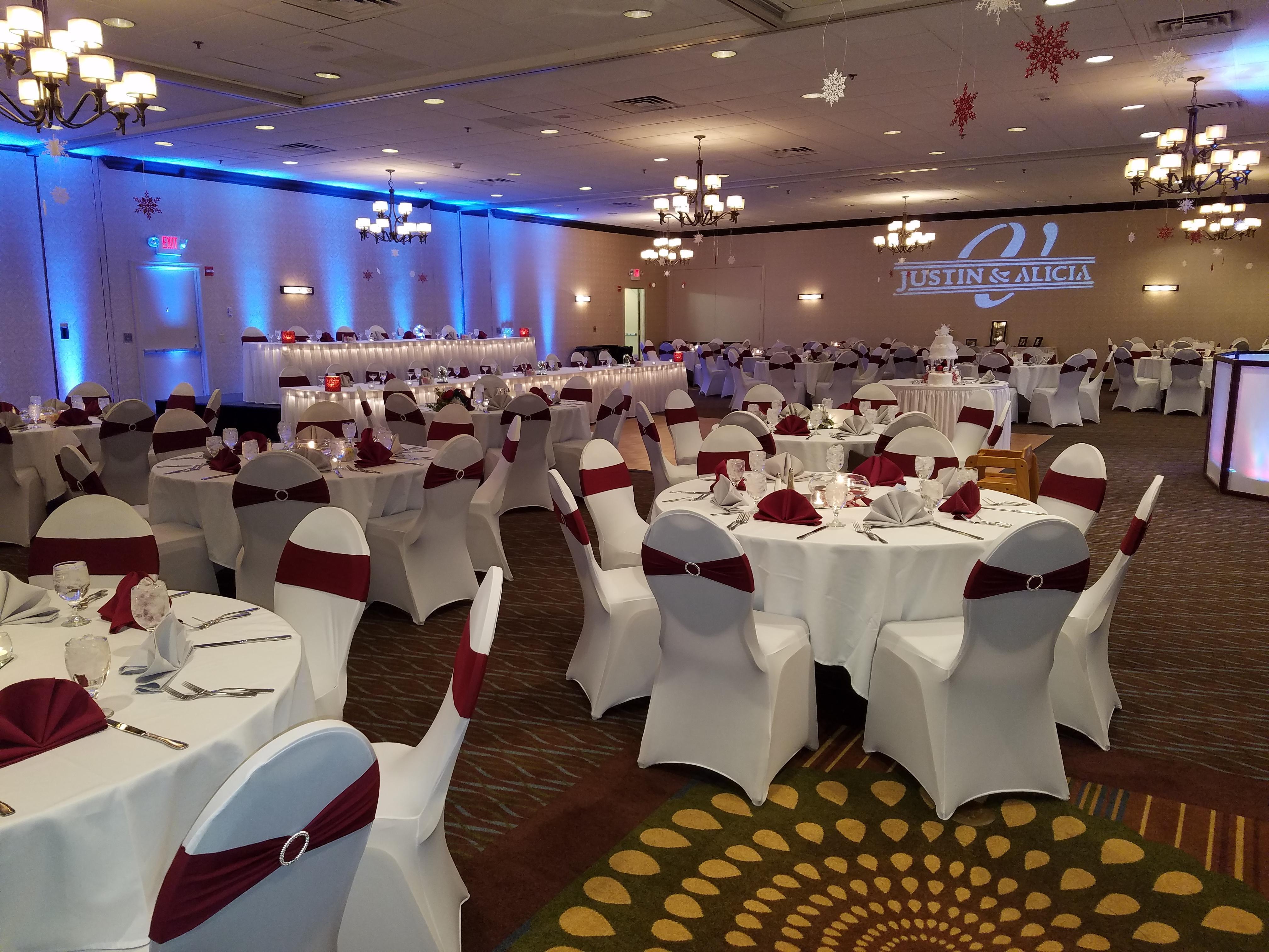 - Chandeliers with dimmers -Tables and chairs -Hotel linens in black or white -Your own Event Planner with connections to decor specialists, florists, Dj's, photographers, cake bakers and more!