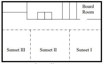 The Sunset Ballroom is ideal for a presentation. Up to 200 can be seated in a Classroom-shaped layout, or 375 in a theater style. This room can also be divided into three separate rooms Sunset I, II and III.