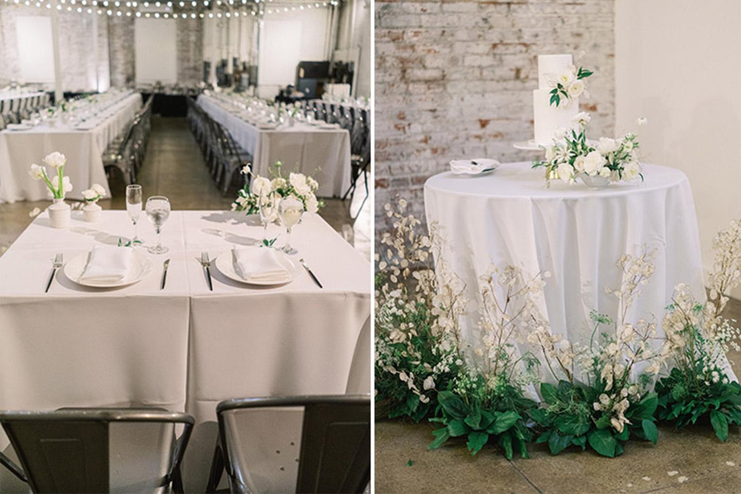If you're looking for a stunning and flexible industrial space with lots of original character to host your wedding ceremony or reception, our warehouse venue is the perfect choice! Honeypot creates a romantic atmosphere with its white-washed brick walls, exposed bow trusses, cathedral ceiling, and beautiful natural lighting. The warehouse venue consists of two main spaces: the reception hall and the ceremony room. In between, there's a bridal lounge, bar area, kitchenette, vendor stations, and storage. Having dedicated spaces for the ceremony and reception helps create an intimate atmosphere for each stage of your wedding. The main reception hall is revealed after the ceremony and cocktail hour, providing a fun and surprising transition for your guests.