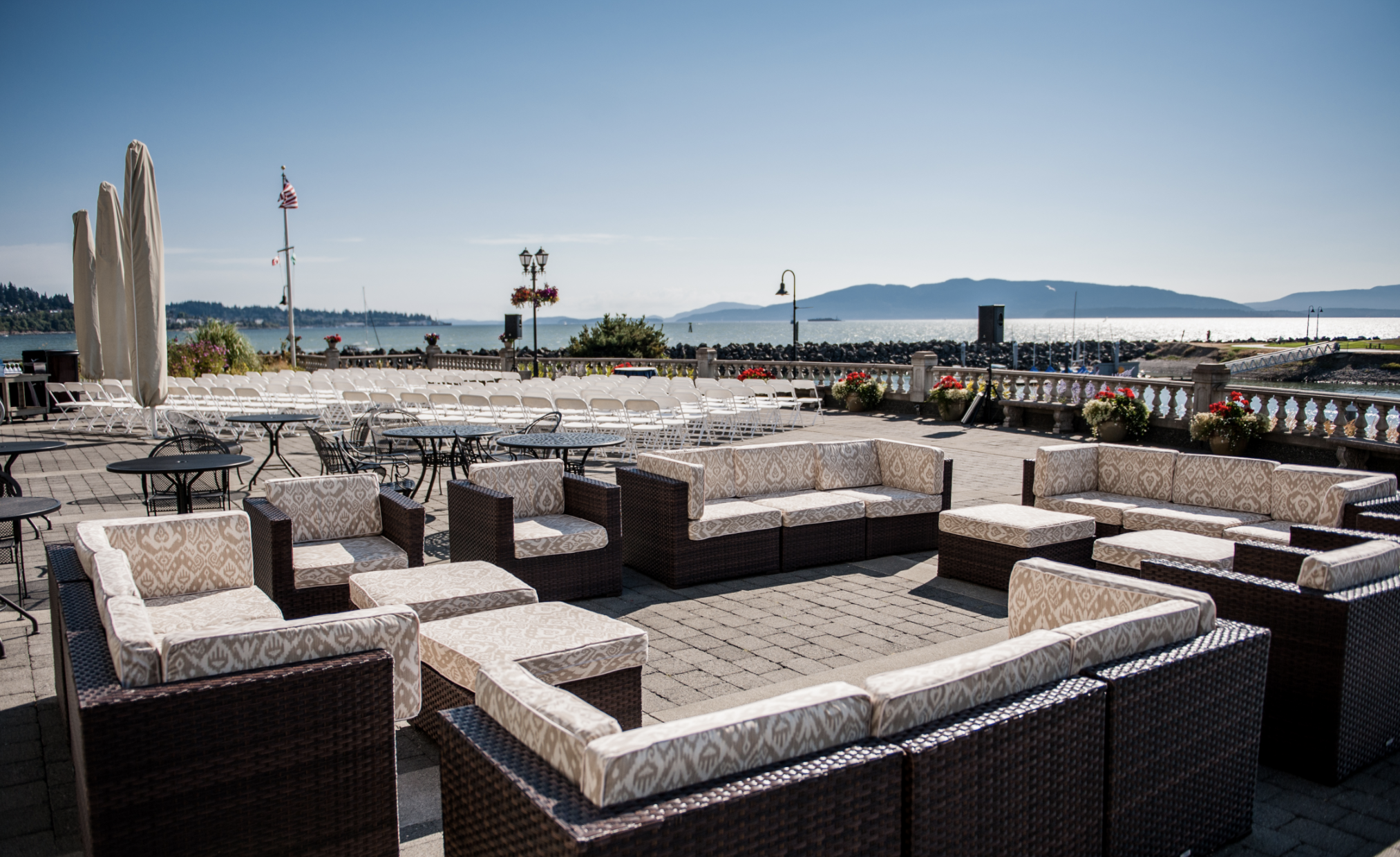 The perfect place for an outdoor ceremony, our Waterside Terrace offers an unbeatable view of the gorgeous Bellingham Bay and the marina. This large space can be shaded with tents, outfitted with a top-notch sound system and be catered to meet almost any wedding need.