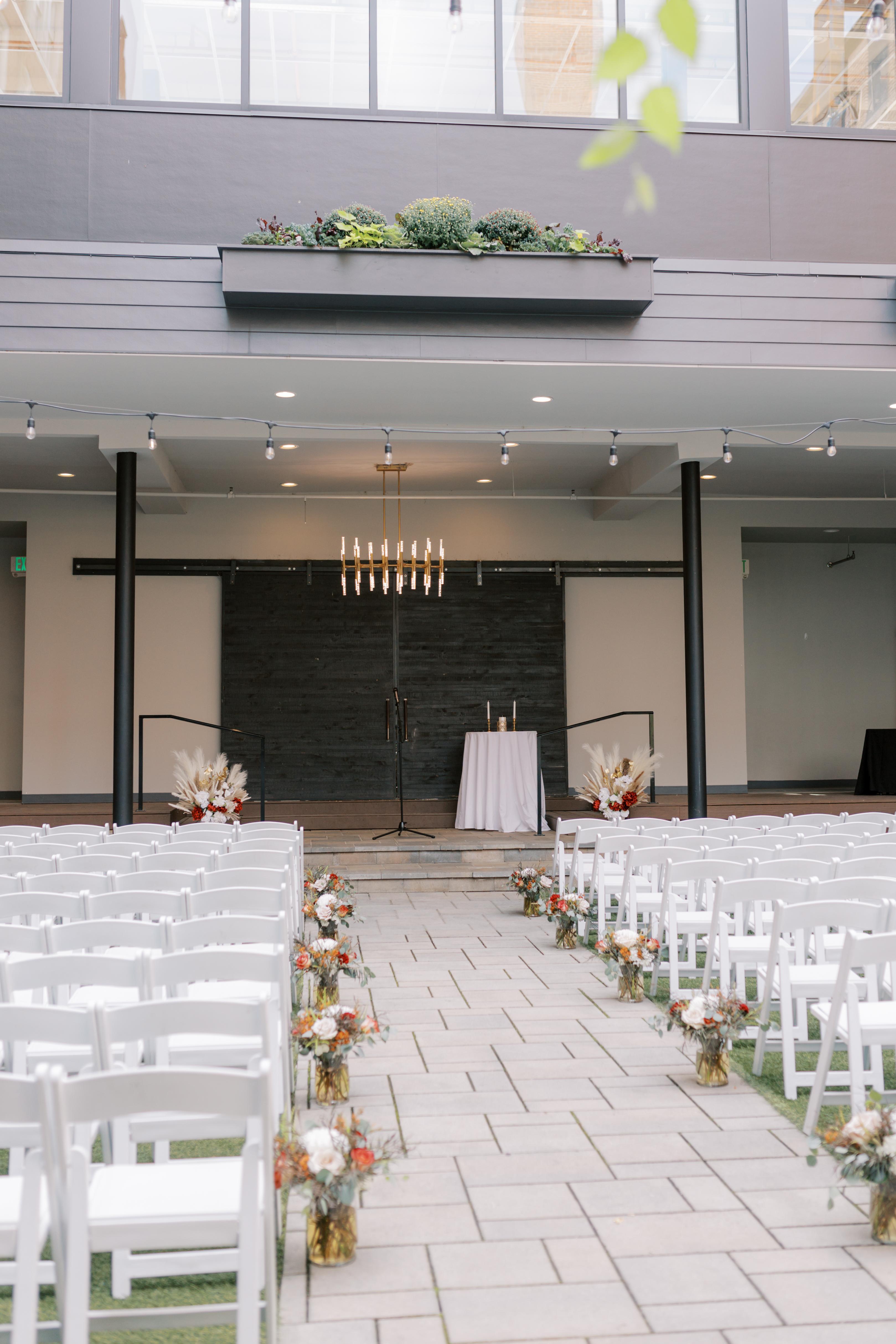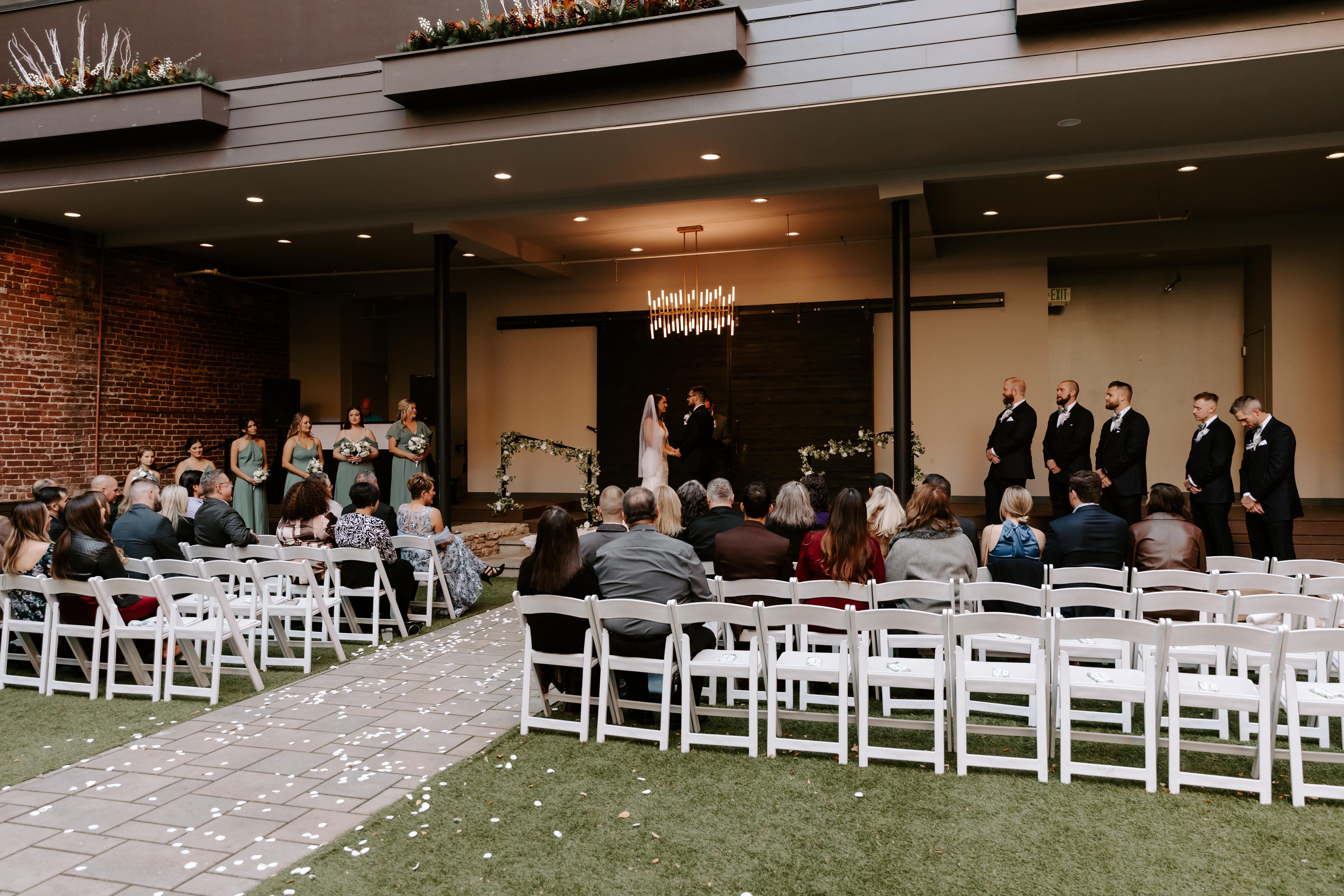 The Courtyard accommodates 160 reception style or 200 for a ceremony with exposed brick, outdoor seating and a wood-burning fireplace. The Courtyard sets your occasion under a wide-open sky, a one-of-a-kind choice for social events, ceremonies, or post-ceremony cocktails.
