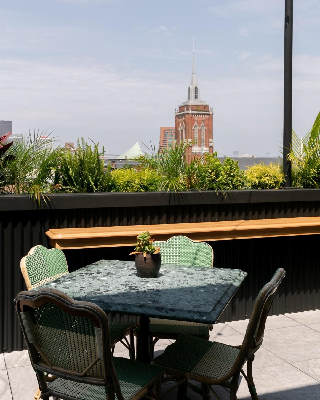 Bar Genevieve, offers cocktails and light fare set against sweeping views of the city and the Ohio River.