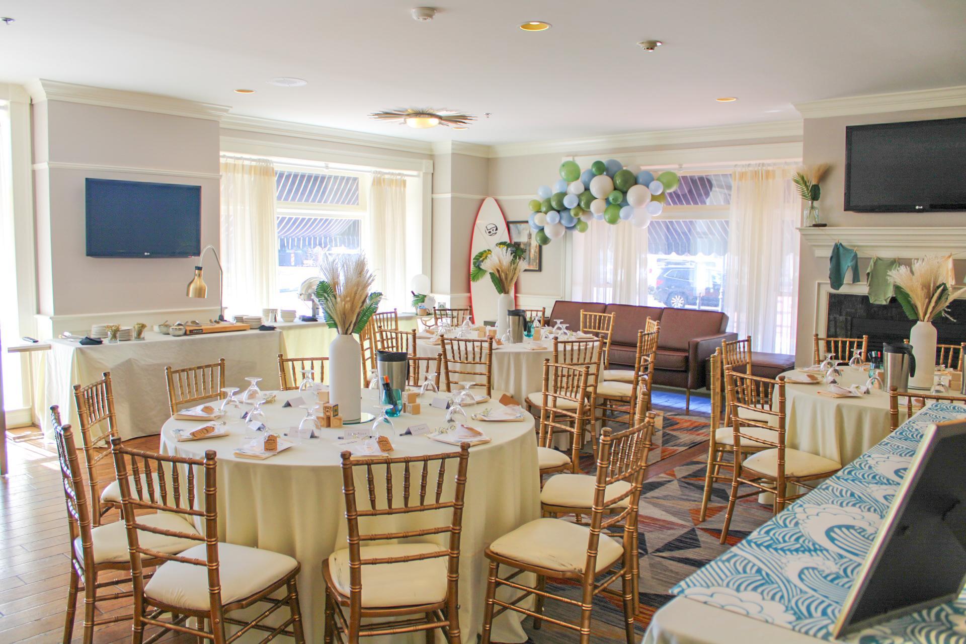 Seating capacity will depend on room layout needs. Dancefloor can be set in this space. Ideal guest count for dinner/reception is below 60. This space can also be used for ceremony space for less than 100 guests. Space also can be utilized for larger farewell breakfasts, rehearsal dinners, welcome parties and other social events. This space features multiple windows offering natural light and a bright atmosphere for small and intimate banquets and receptions.