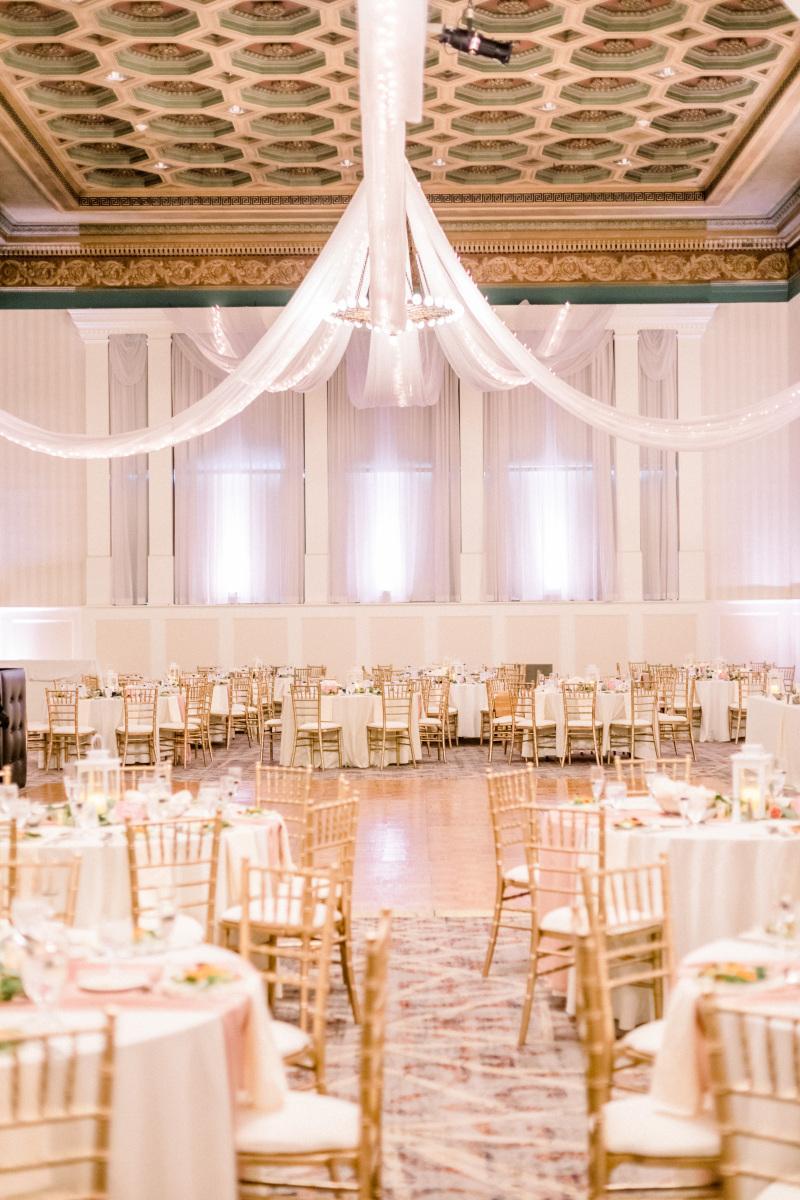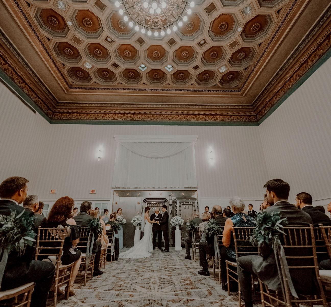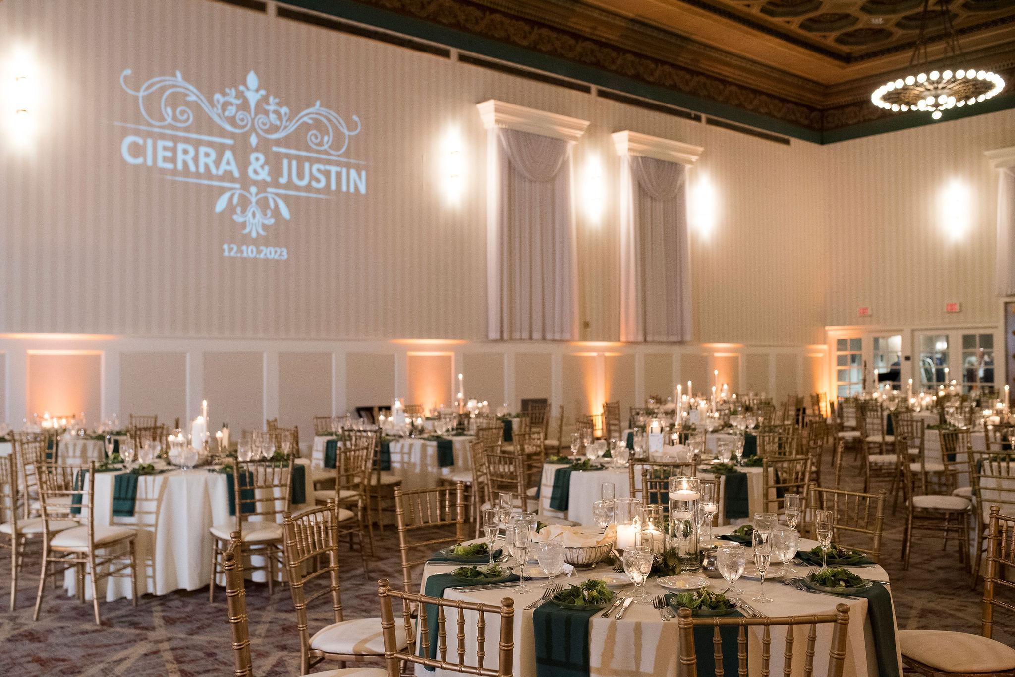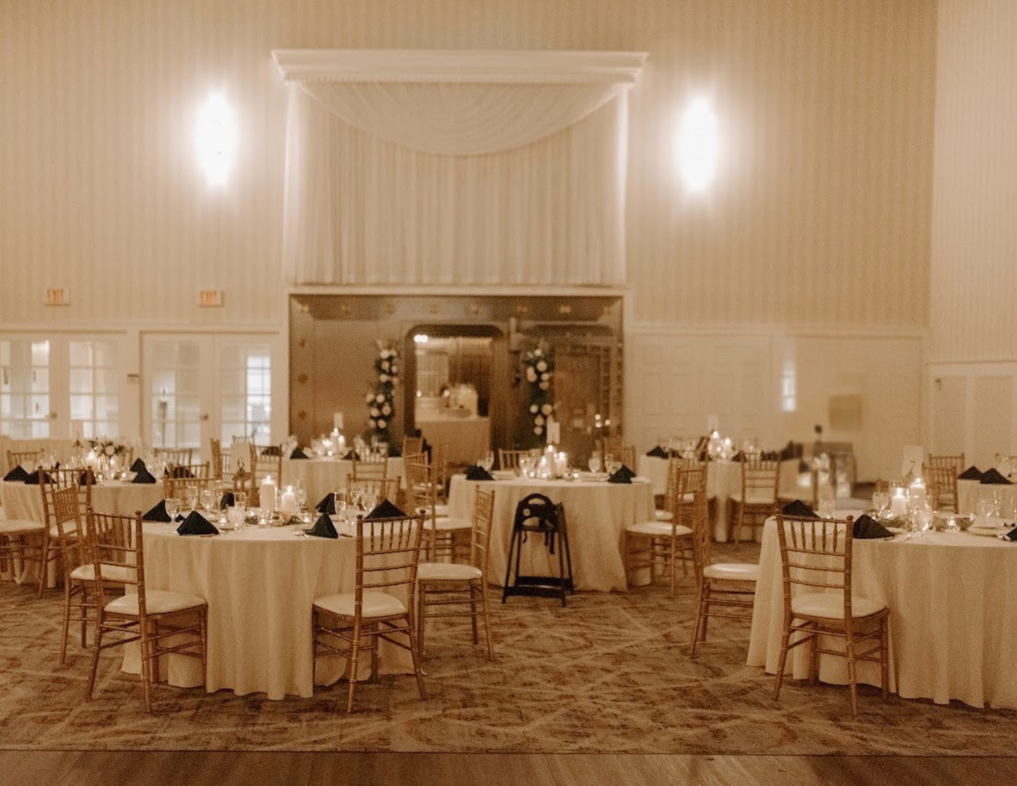 Original 1814 bank vault Drapery Dimmable chandeliers and wall sconces Unfixed dancefloor, giving you the options of size and placement in the room Gold Chiavari chairs Tables, linen, centerpieces, tableware all included On-site wedding coordinator