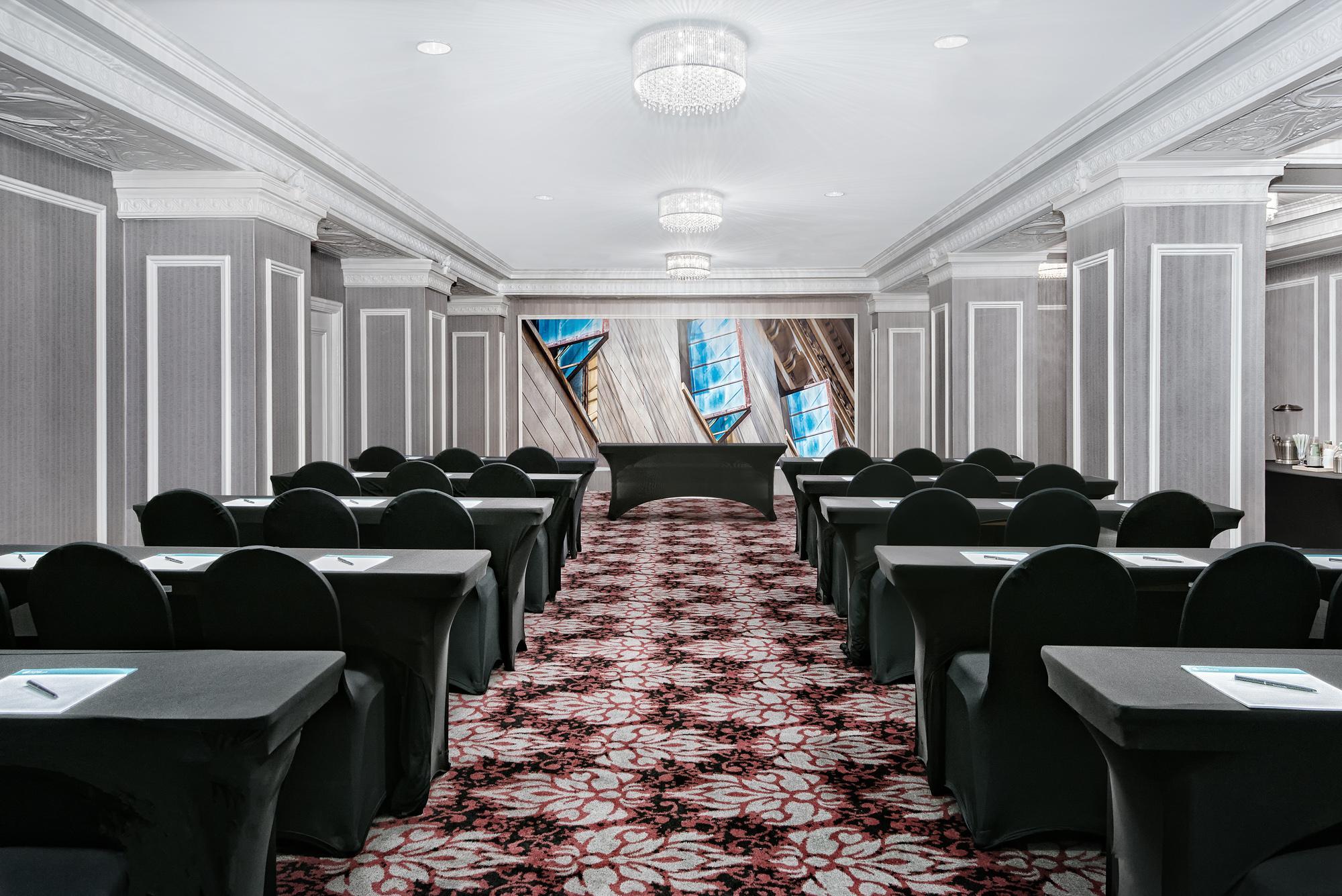 With this room being the largest event space we have on property at 1,344 square feet, it has the potential to bring big and small dreams/visions to reality with its many features. This room features uniquely-carved ceilings, artwork that mimics the designs throughout the historic arts & theatre district and pillars that allow F&B elements to be successfully integrated into the event but separately setup so that it does not interrupt the layout of the event.