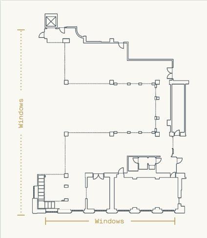 The full mezzanine can be divided into two separate spaces. Overlooking the hustle and bustle of the main lobby restaurant, the mezzanine offers a private enclave while still being in the heart of the action. Sitting right next to the landmarked fully restored Italianate coffered ceiling, this event space provides a beautiful backdrop ideal for those fun cocktail receptions and fancy dinners.