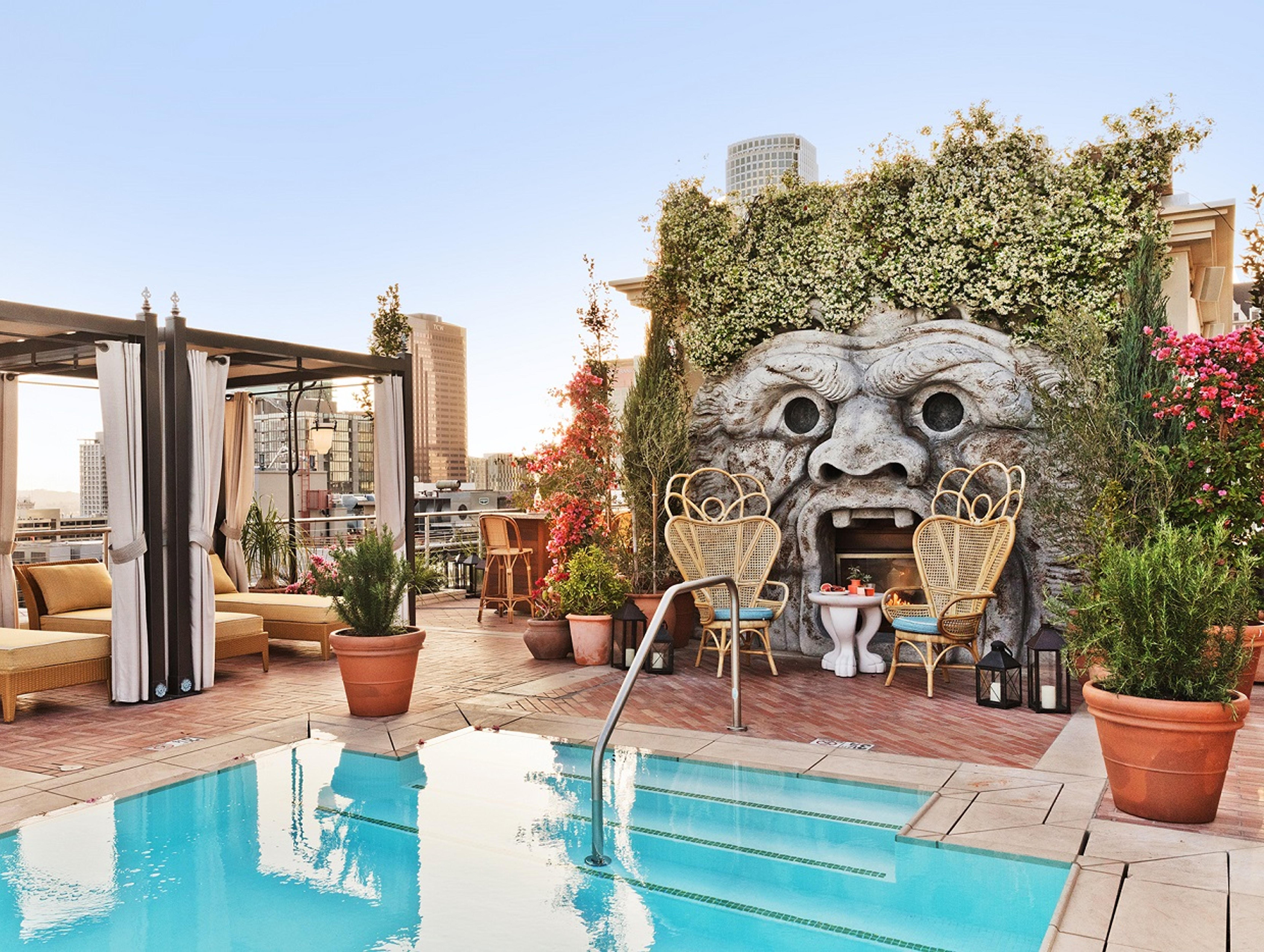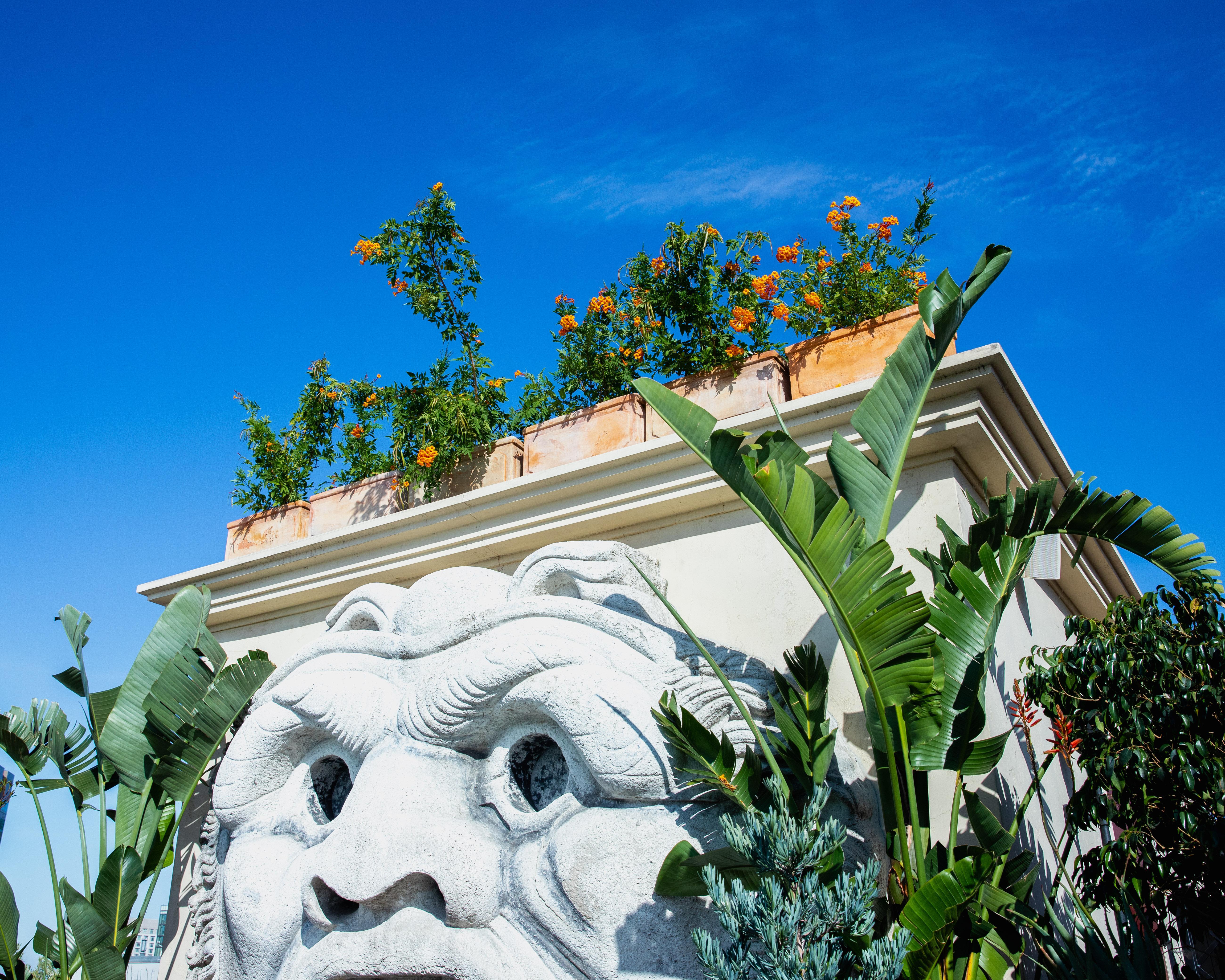 Offering sweeping views of the ever changing Downtown skyline, the rooftop offers various incredible event spaces from the large pool deck complete with a direct replica sculpture of the Orcus Mouth in Il Parco dei Monstri located in Bomarzo, Italy to the vibrant mural clad Bar Clara offering an indoor bar and spacious outdoor patio, all with the comfort and easy of the Mediterranean spirit woven into the design.