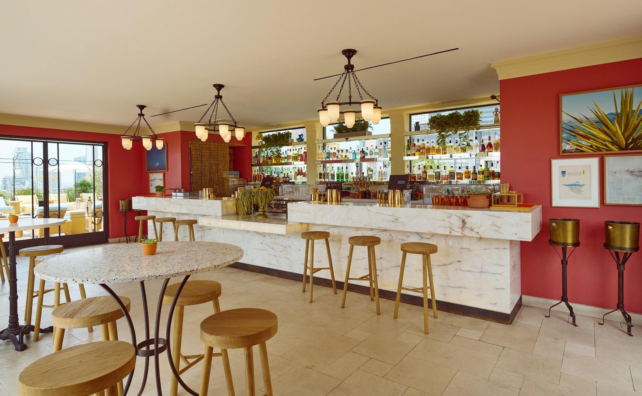 Offering sweeping views of the ever changing Downtown skyline, the vibrant mural clad Bar Clara offers an indoor bar and spacious outdoor patio, all with the comfort and easy of the Mediterranean spirit woven into the design.