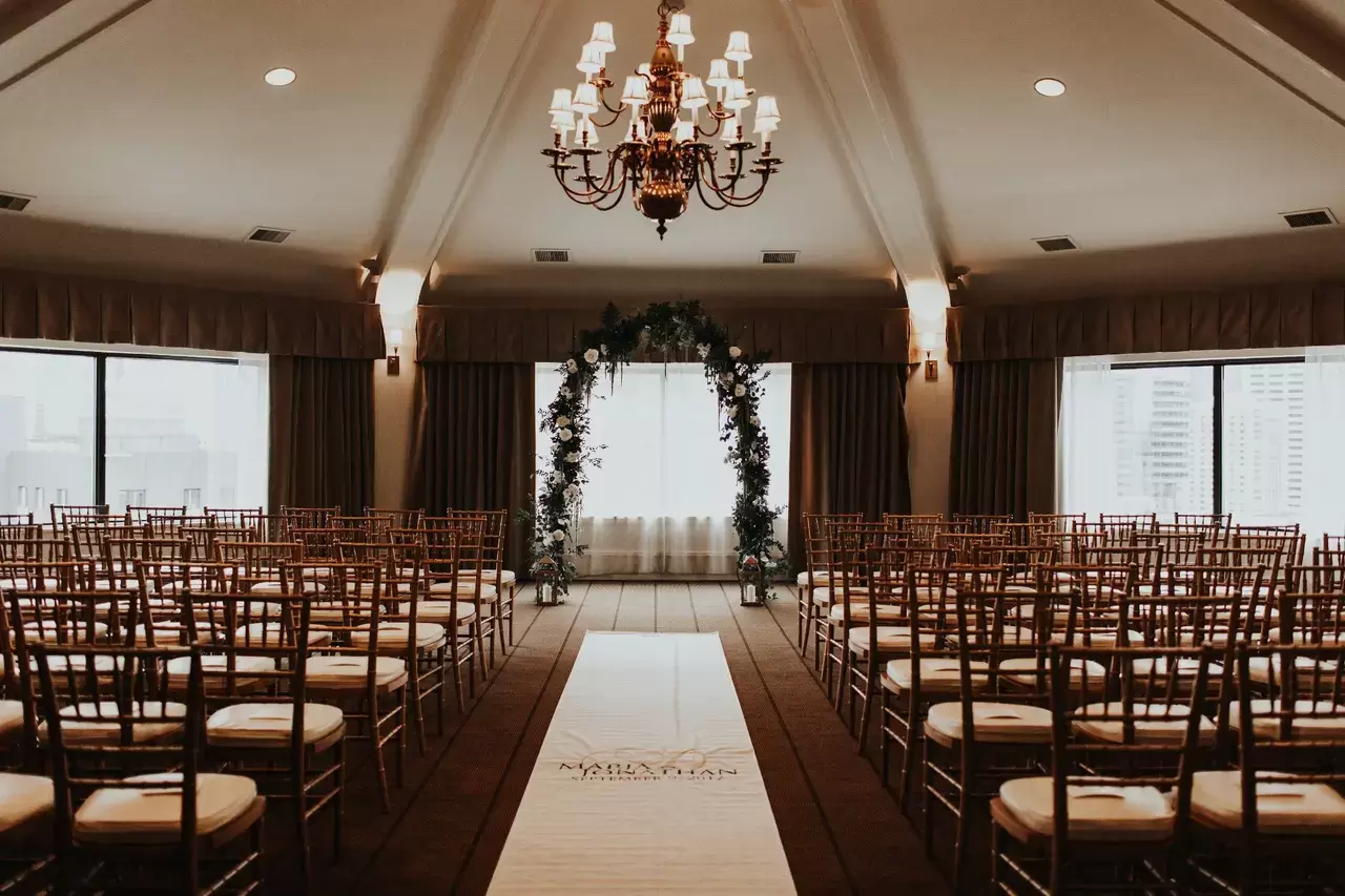 Book One Event Space - Select 1 Gift | Book 2 Event Spaces Select 2 Gifts | Choose options: Dinner for two for your 1st anniversary, waived room fee, complimentary sparkling wine toast