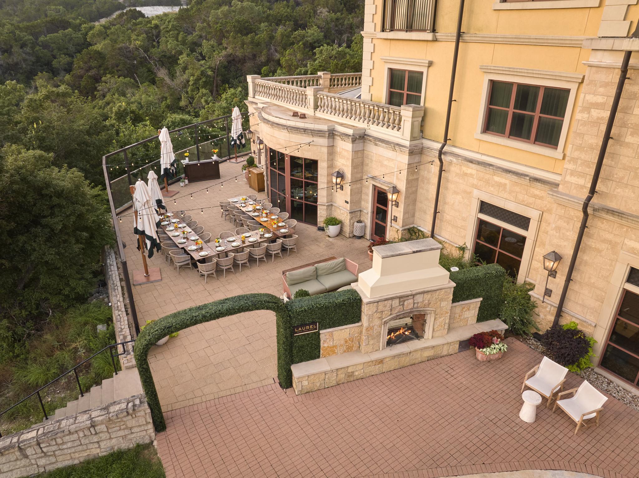 Located adjacent to Laurel Restaurant, this outdoor patio offers 320 square feet of space and is a beautiful setting for cocktail receptions and deliciously catered get-togethers with views of Hill Country.