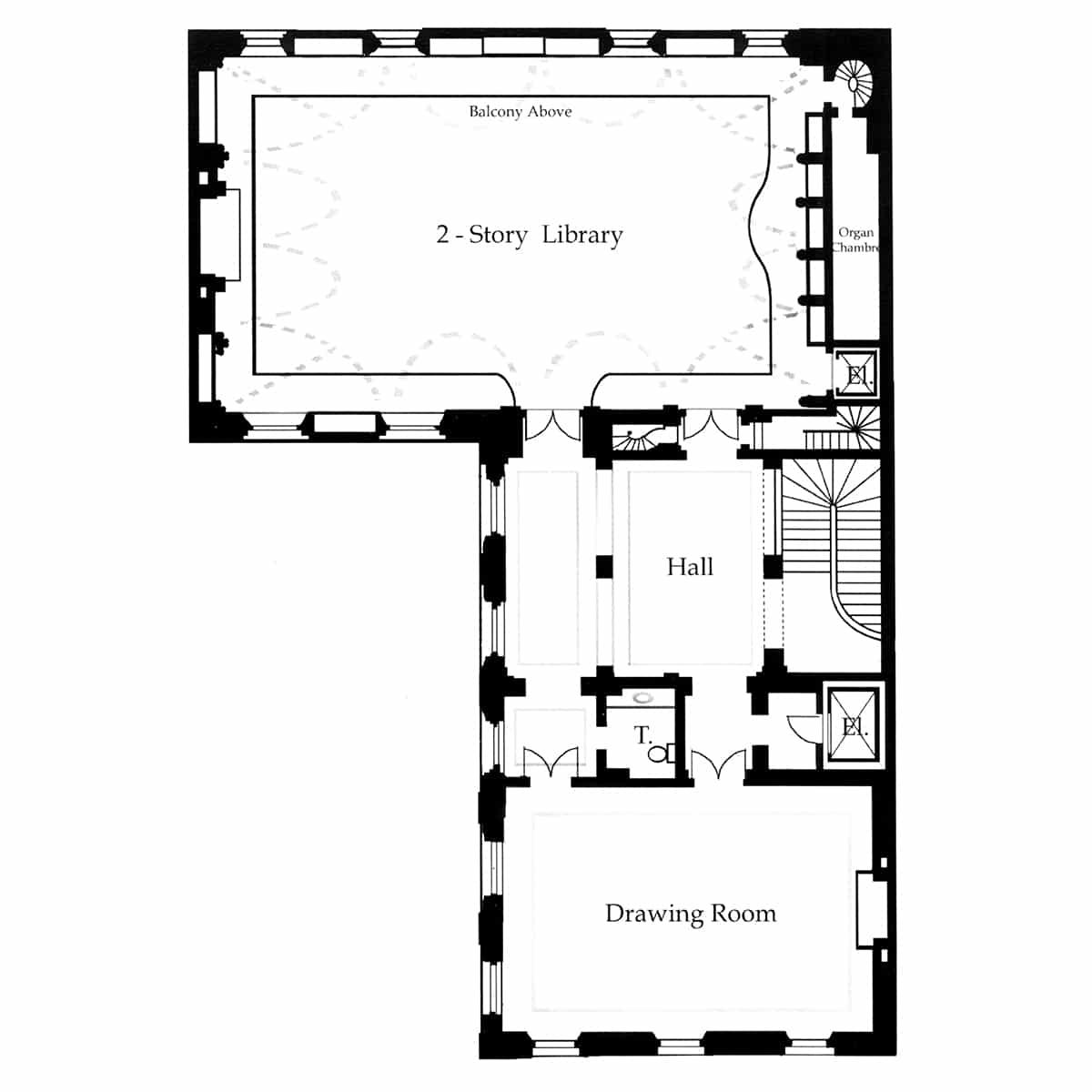 The library is one of the great treasures of House of the Redeemer. Constructed for a 16th-century Ducal Palace on the outskirts of Urbino, Italy, the woodwork was purchased by Edith Fabbri at the outbreak of World War I. The woodwork was installed by a Florentine carpenter by the name of “Tonino,” under the direction of Egisto Fabbri, who designed the organ grille and the main entrance to correspond to the original design. The magnificently carved mantel was also taken from the Ducal library outside Urbino. The ceiling medallion depicts the arms of Francesco Maria II Della Rovere, the last Duke of Urbino.