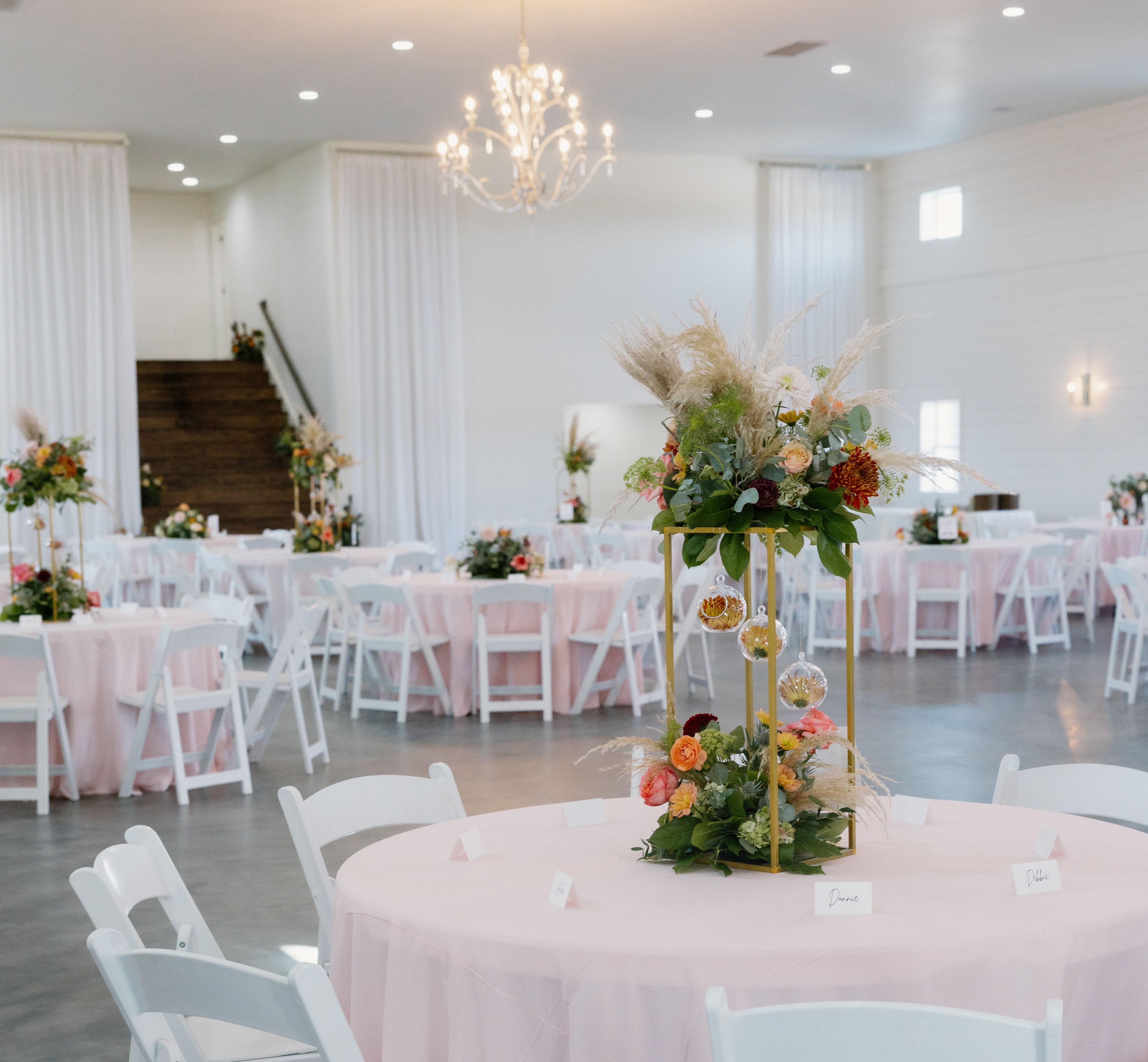 Nestled on 40 acres of tranquil countryside in Guthrie, Oklahoma, Hudson Springs offers the perfect setting for your special day. With stunning scenery, pet-friendly areas, and a variety of event spaces, Hudson Springs is the ideal venue for weddings and other celebrations. Our spacious indoor venue, spanning 7,800 square feet, is perfect for accommodating large groups. Featuring white shiplap walls, chandeliers, a large patio, and exposed beams, this timeless space can be customized to suit any wedding theme. The Great Room comfortably seats over 350 guests, making it ideal for both indoor ceremonies and receptions. Whether you're planning a grand celebration or an intimate gathering, Hudson Springs offers the perfect backdrop for your unforgettable event.