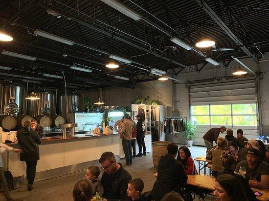 - Bierhall style seating for 50 - 60 - Full service bar - Tea lights on wine barrels - Dimming overhead lights - Open overhead door (in nice weather) for blended indoor/outdoor vibes - Adjacent outdoor biergarten - Gender neutral restroom - Mountain views!