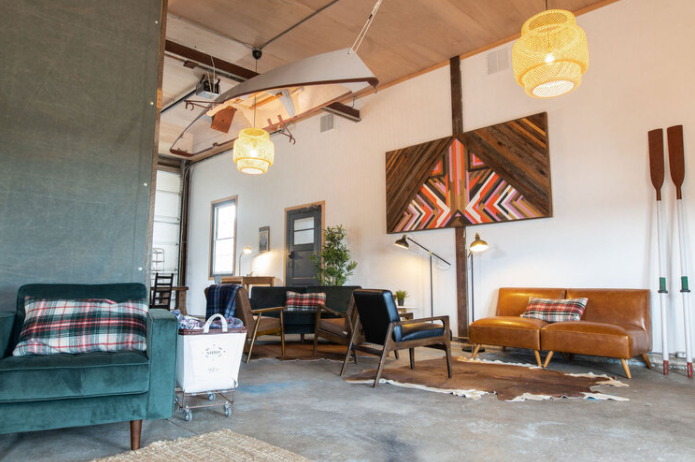 The Clubhouse is a cozy, photogenic space for intimate events. It is ideal for smaller gatherings such as baby showers, parties, and professional meetings. A vintage Aristocrat trailer has been repurposed as a coffee bar and seating.