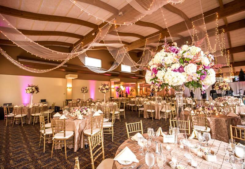 Chiavari Chairs Round Tables with Floor Length Linens and Overlay All china, stemware, and place settings Dance Floor Cocktail Tables Large Outdoor Space with Gorgeous View of Ski Slopes All Banquet and Bar Staff Dedicated Service Manager to Assist with Planning