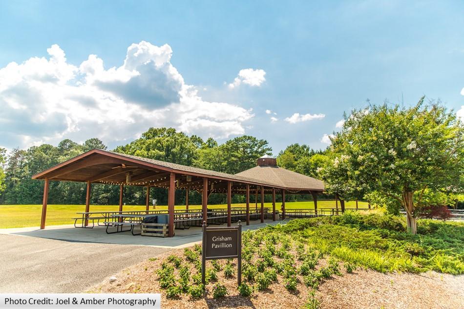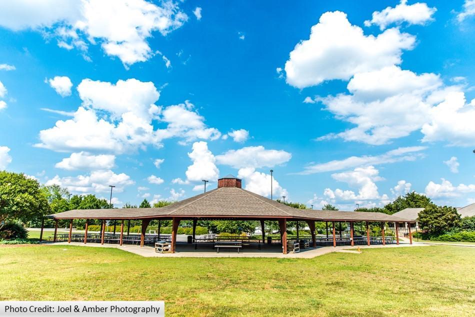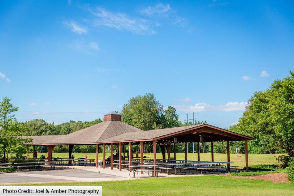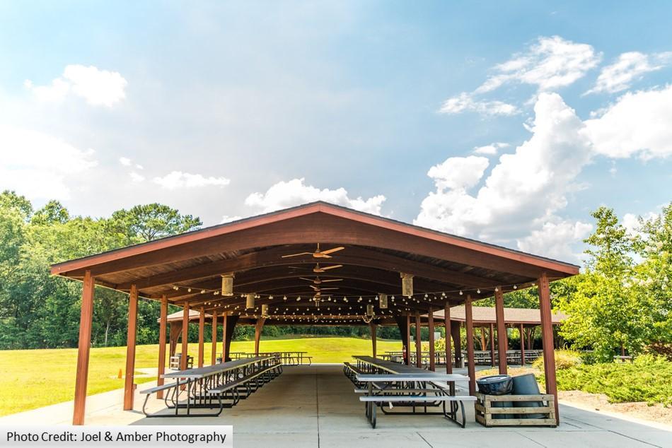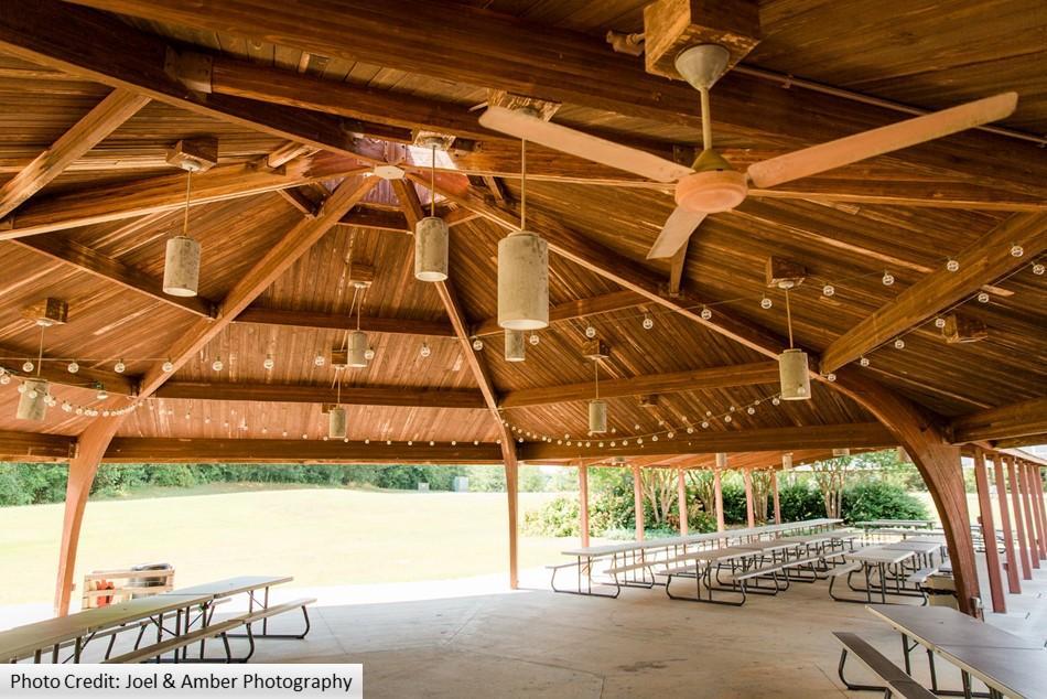 The Pavilion has picnic table seating for up to 250 guests. There are two water hookups and a few electrical outlets for inflatables.