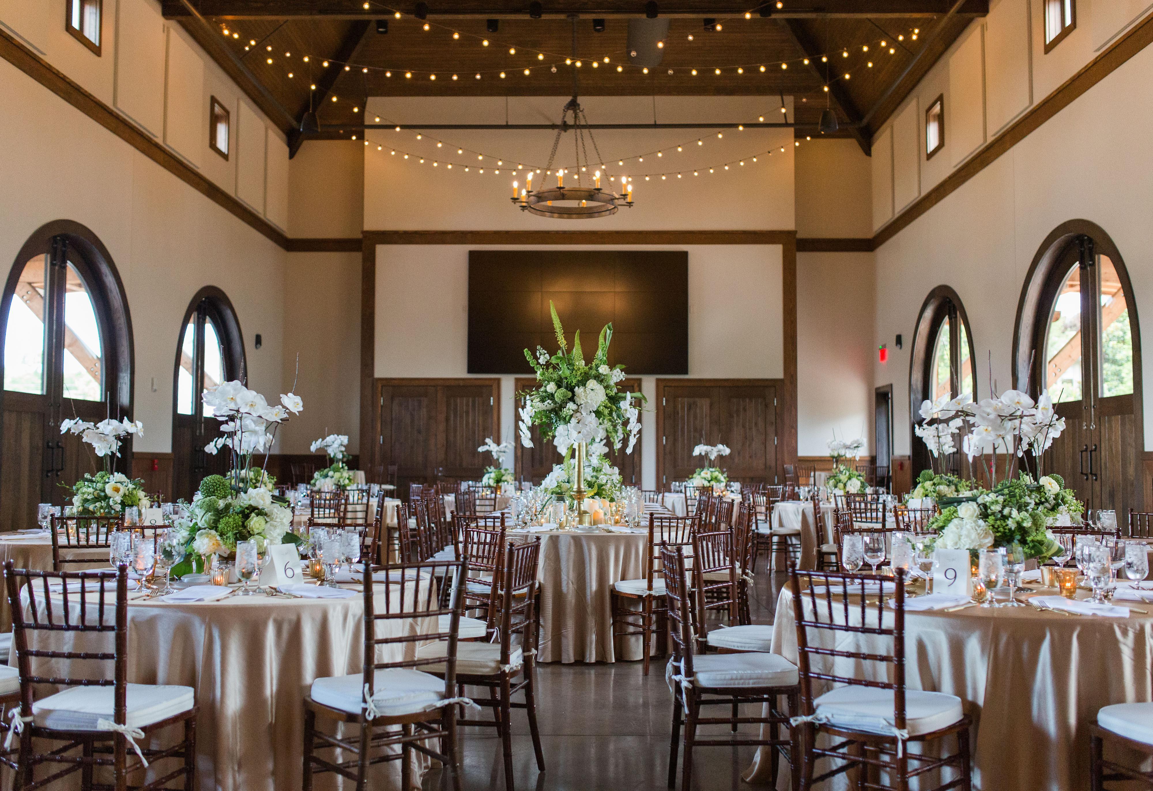 The Carriage House is a perfect venue space that offers an indoor-outdoor feel. It's large barn doors open to a gorgeous view of the Garden Lake. Tables, chairs, audio visual screens, microphones and much more are included in the rental!