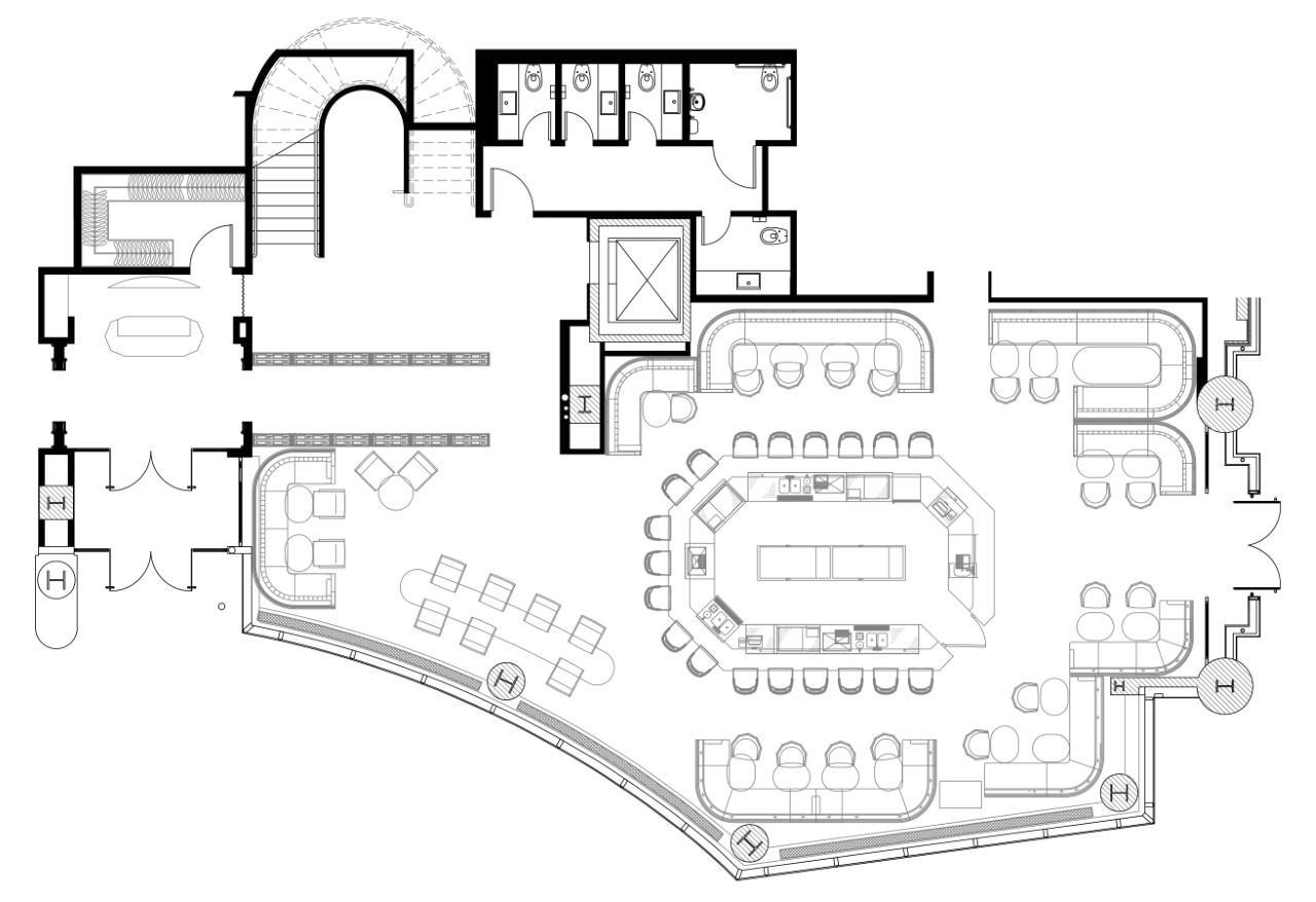 It's a generous space if you would like to cocktail in the immediate area upon entering the lounge followed by the seated dinner on the banquettes.