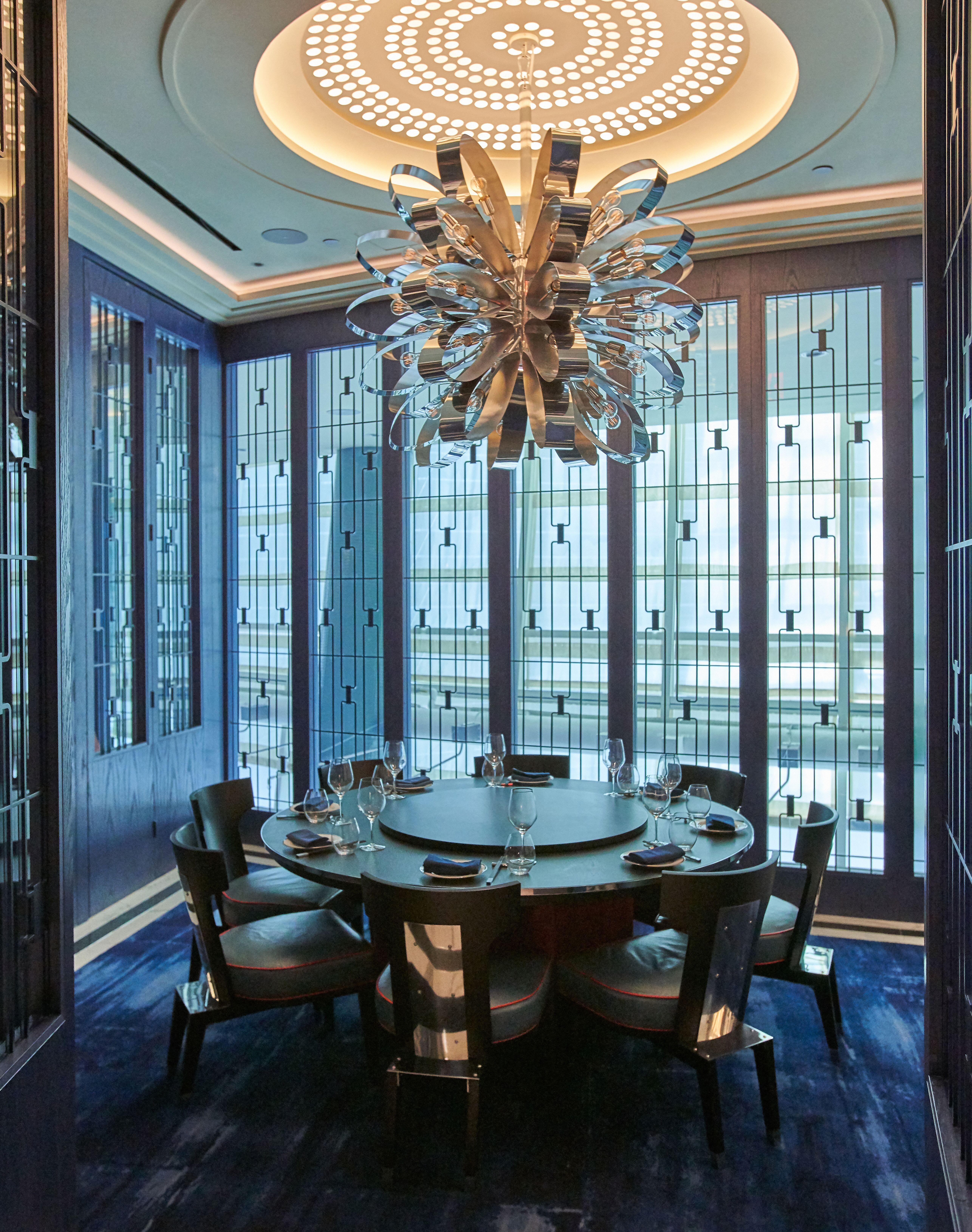 The Jinyu room seats up to 10 at one round table or up to 20 as a standing room reception. One section of the wall can open to room Jiuwan.