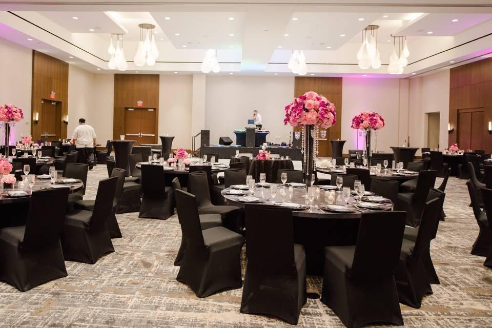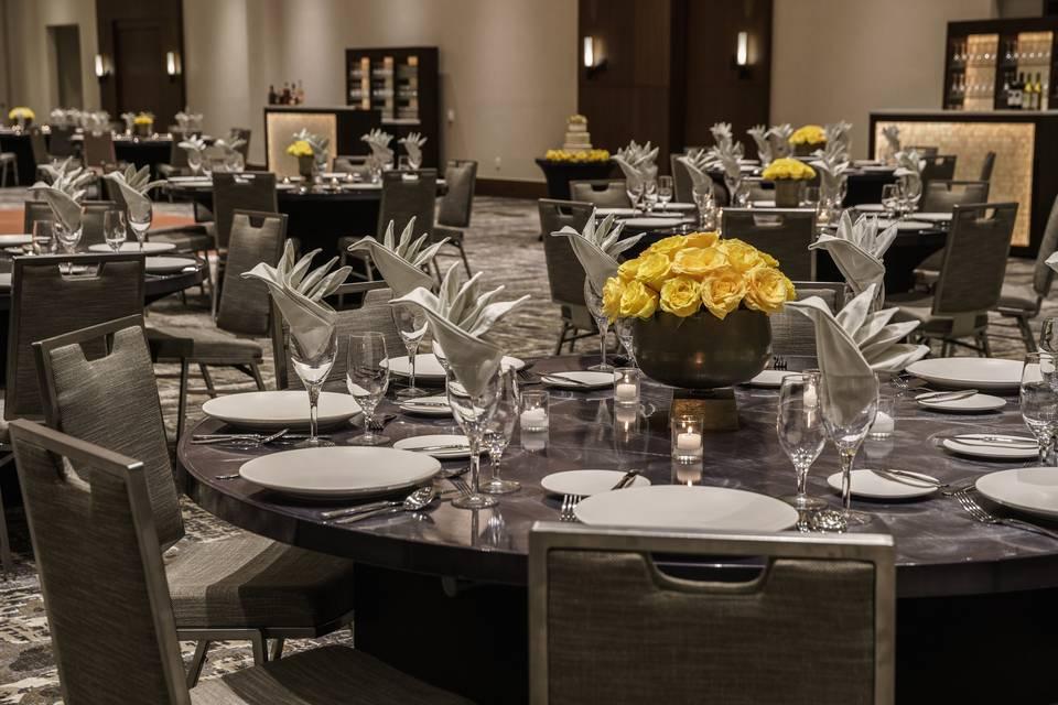 The Hyatt Regency Houston/Galleria has 10 spaces to choose from for your event, the largest of which is the Regency Ballroom. Each space is open, sleek, and contemporary, allowing you to make any vision come to life. The Regency Ballroom is ideal for a larger reception. With its gorgeous floor-to-ceiling windows and modern decor, this elegant ballroom is 7,346 square feet and can accommodate up to 500 guests. For a more intimate setting, you can choose from many of the other smaller spaces, including the lounge, pre-function area, and breakout rooms. The lounge is a great space for live music and cocktails, and the breakout rooms are ideal for a small casual ceremony or reception. With a wide variety of spaces and styles, you can transform any of their 10 venues into the ideal space for your wedding.