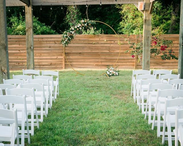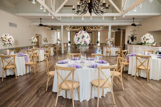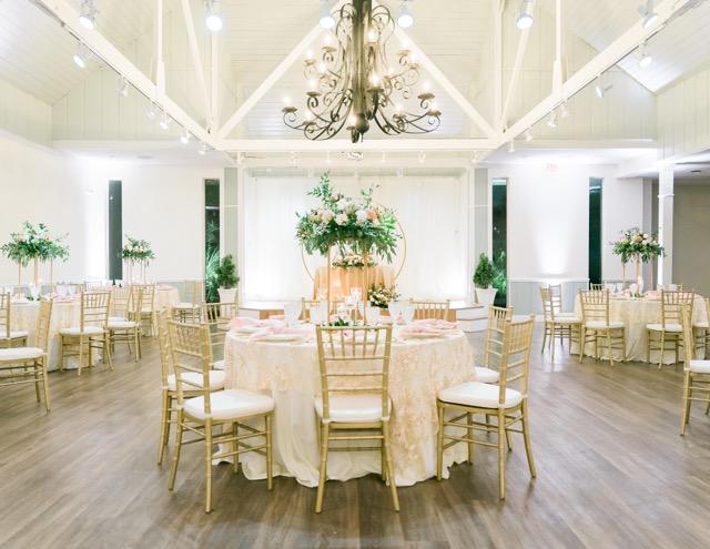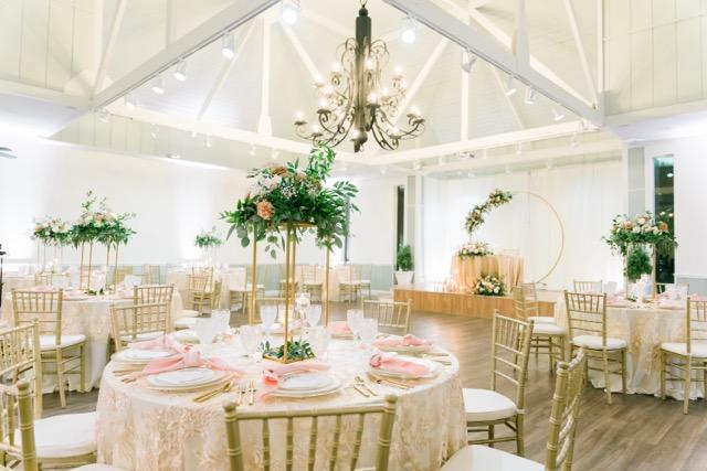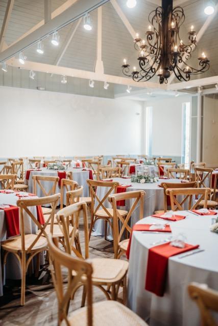 Idlewood Venue’s Azalea Room has a seating capacity of 250 guests with room for dancing! All of our packages include tables, wooden cross-back chairs, full-length cloth table linens and napkins, and complete set-up and breakdown. Our event staff is ready to offer you a refreshing cocktail at our built-in bar while your guests enjoy capturing memories in front of our greenery wall. Tip – Personalize with a custom-made neon sign or monogram of your company logo or new last name!
