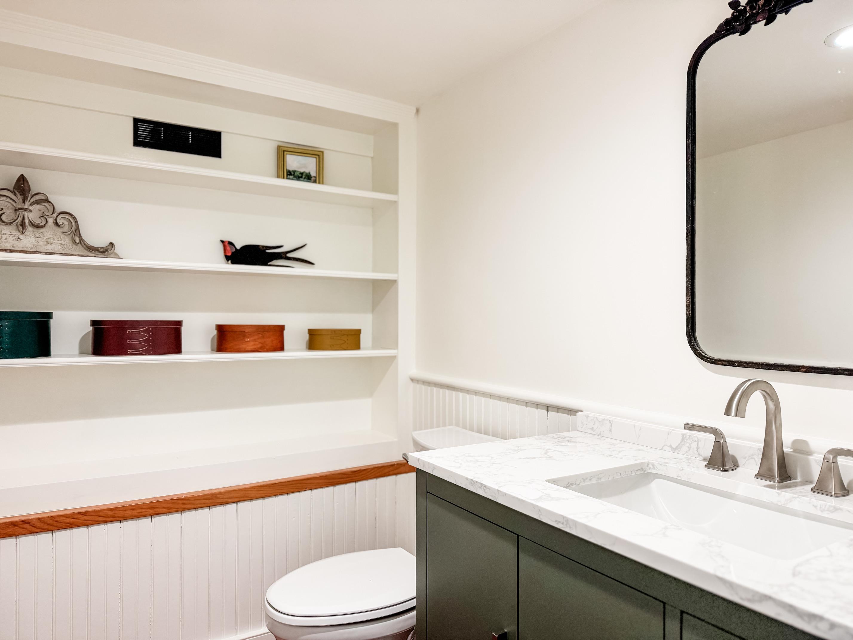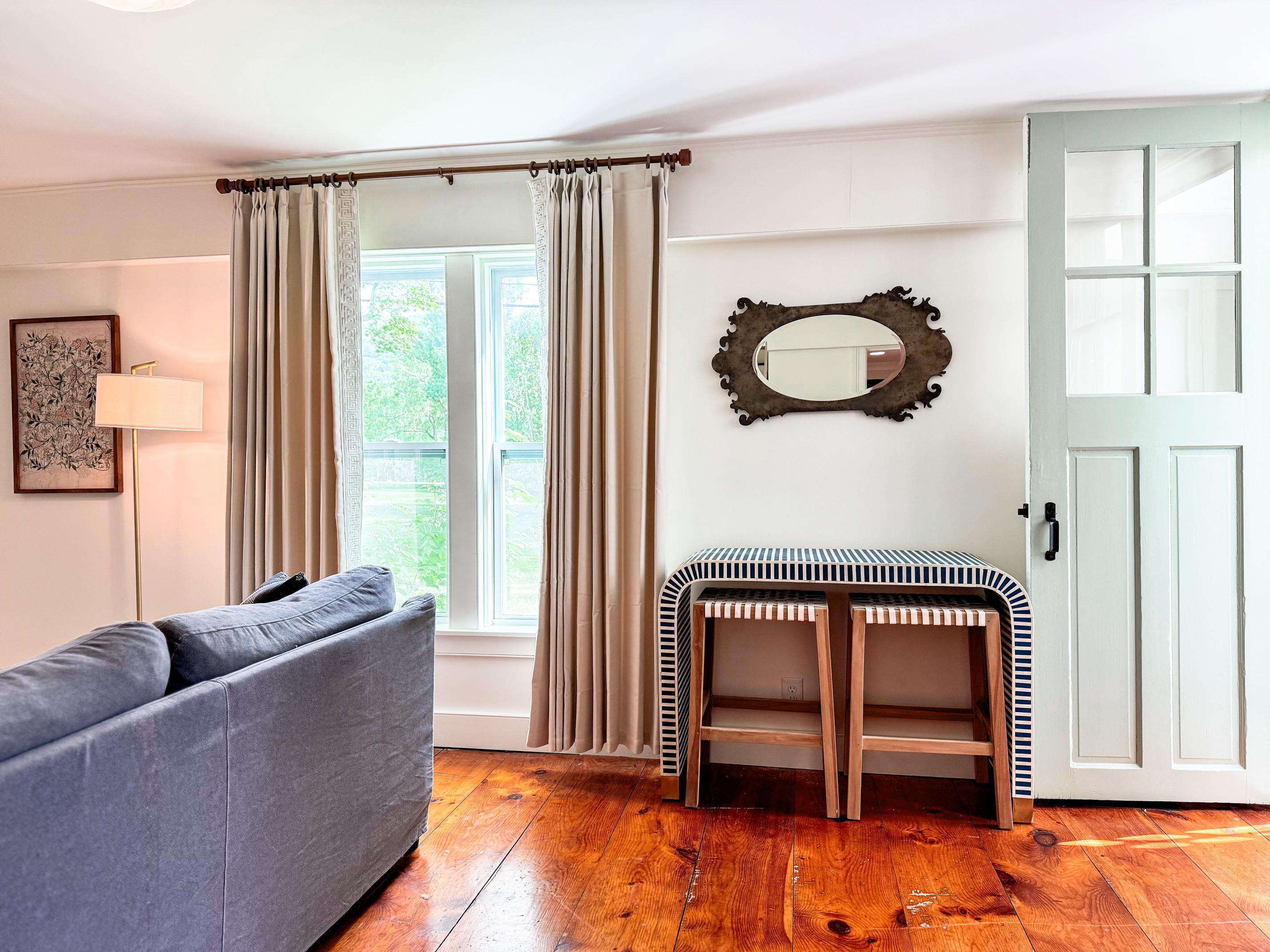 The Farmhouse - a newly renovated, private two-story home set just beyond the Main Inn. This beautifully designed home blends rustic elegance with light and airy design, offering a peaceful countryside retreat. Upstairs, a hand-picked private library and 2.5 bathrooms compliment The sunlit master bedroom boasts a king-size bed and a writing desk overlooking the scenic barn. The guest bedroom offers a plush queen-size bed and picturesque views of rolling hills.