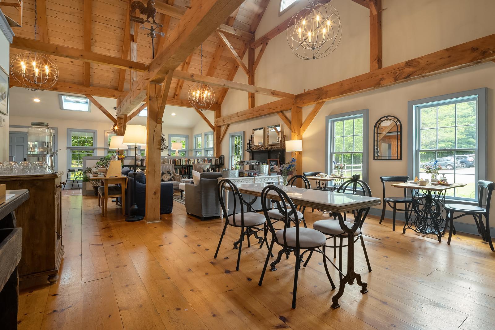 The Great Room features 2000 sq feet of open space- perfect for any wedding related event from a Bridal pre- wedding Salon with Brunch and Sparkles to Cocktail Reception or a Memorable Ceremony. Accommodates up to 99 guests all under classic post and beam architecture,