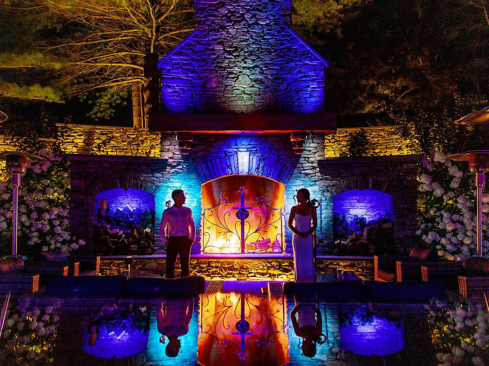 The wedding garden, named "Enchantment", has a 100' x 60' translucent sailcloth tent, a 42' alabaster bar, and a dry-stack stone fire place that it took four masons one year to build. In addition to these marvelous features there are also three fire-pits on site, one of which is cantilevered and hangs above the outer wall over looking Cayuga Lake. Cutting edge amenities, such as a customizable LED lighting system and WiFi Sonos system, surround lush and beautiful gardens.