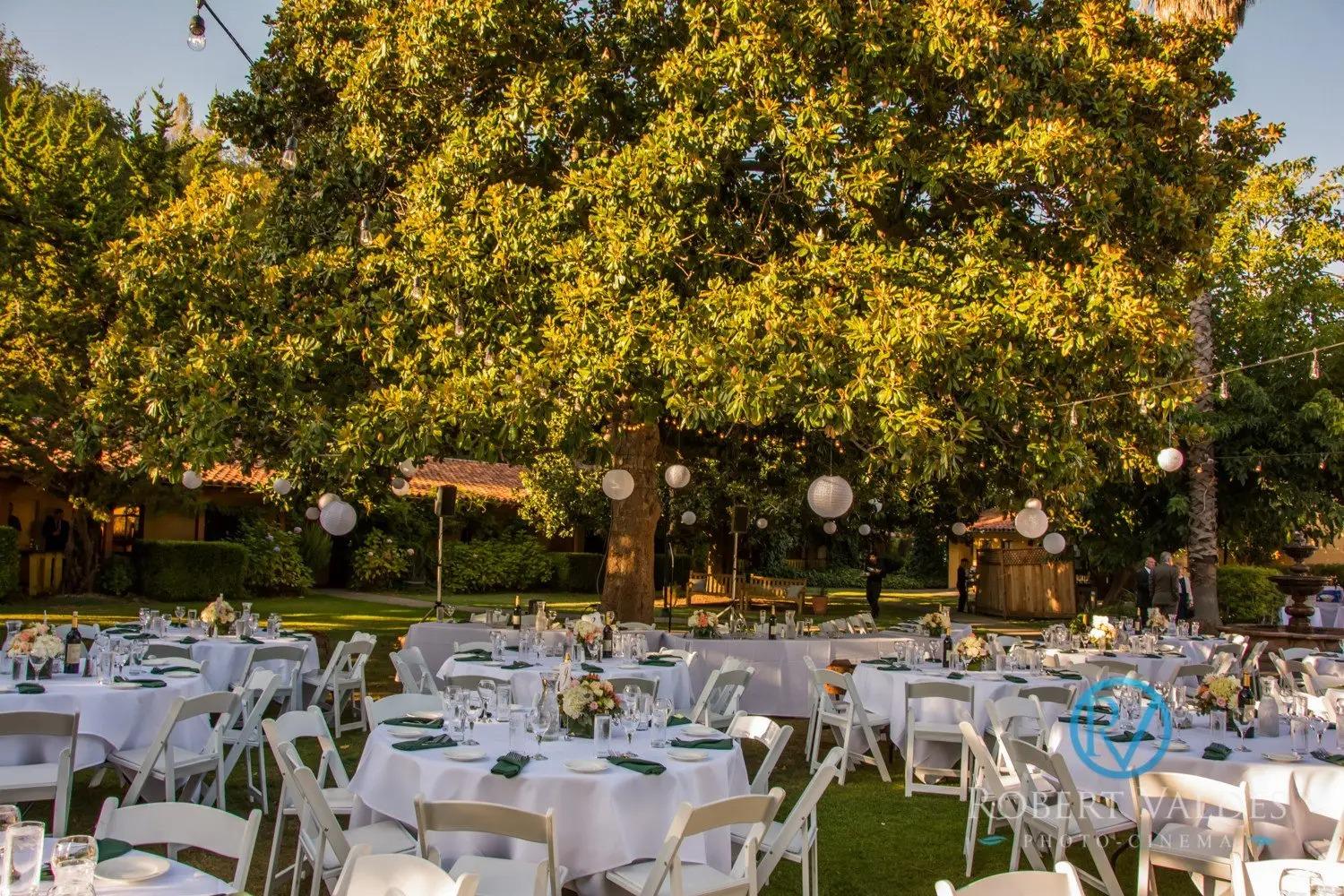 At Inn Marin, romance blooms in a secret Spanish‑style courtyard—where intimate ceremonies under sweeping trees fade into elegant receptions framed by garden lights & fragrant magnolias