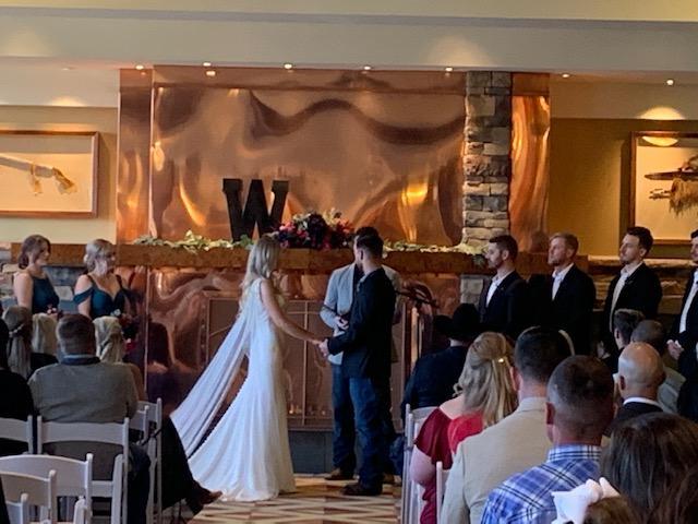With full length, North-facing Windows, the Lake & Mountain Views are still visible from this intimate Ceremony Space. Flanked by a large copper fireplace, this space allows for guests to witness your vow exchange, without worrying about the weather!
