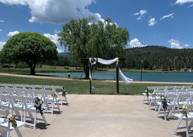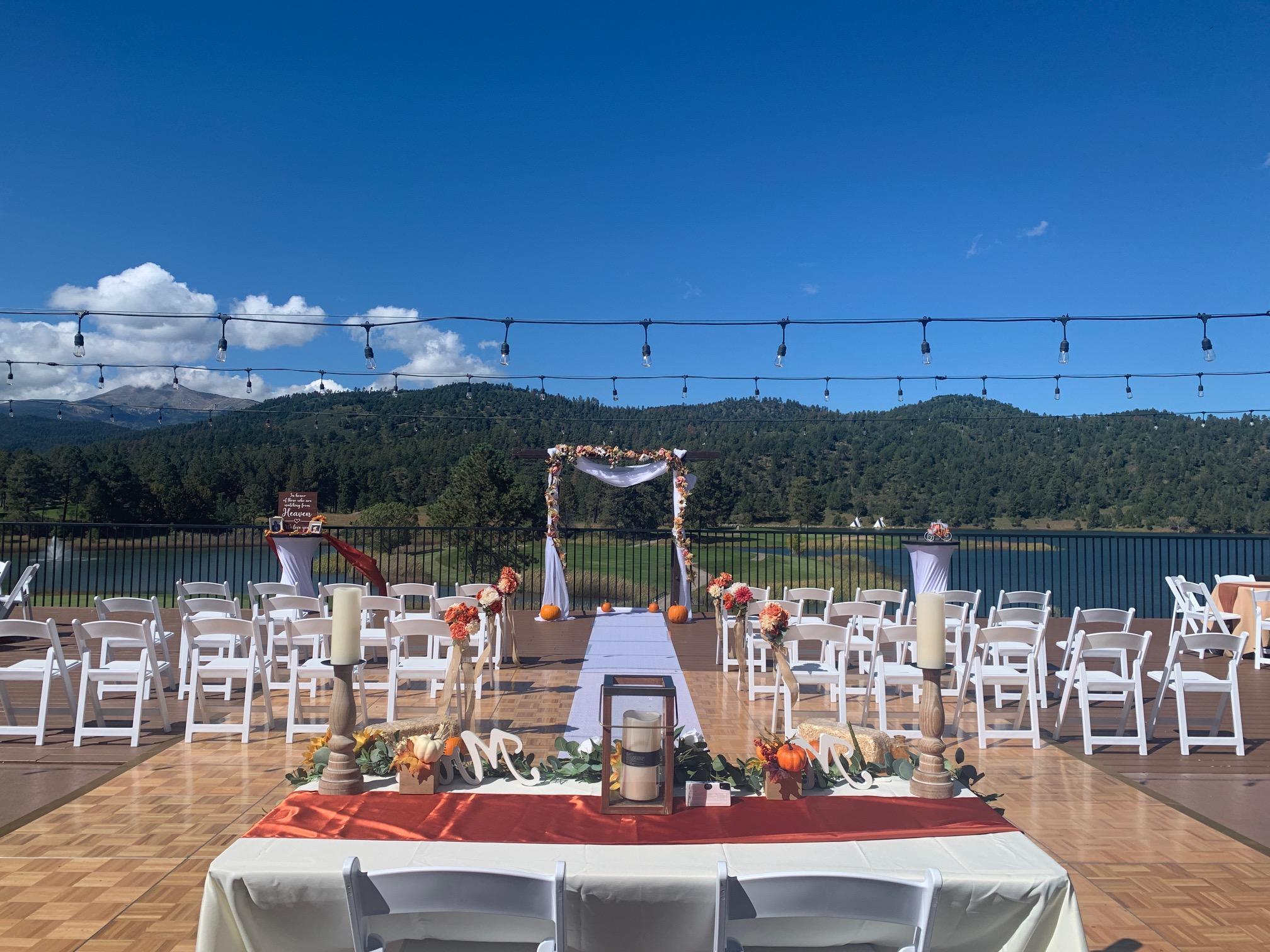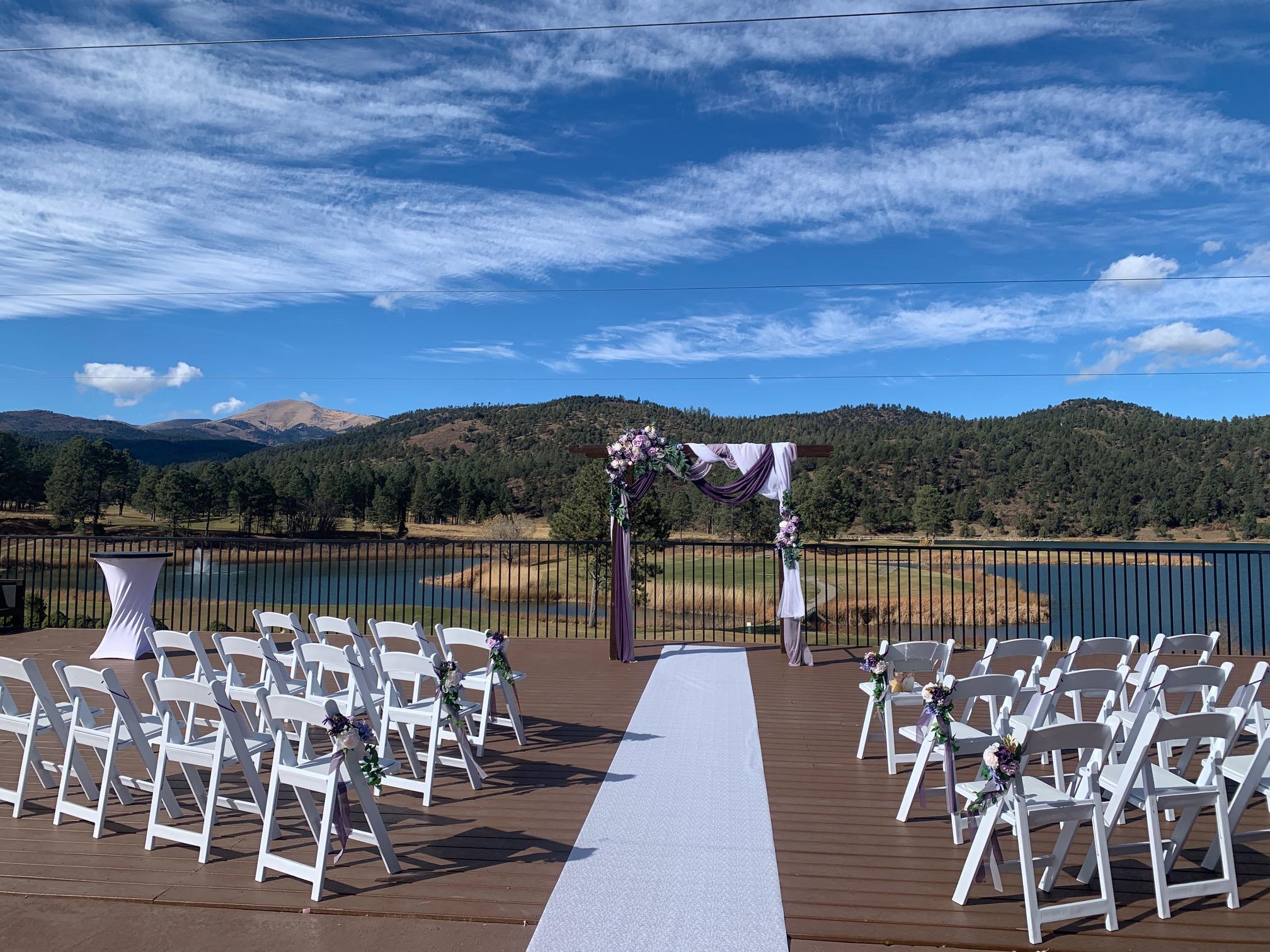 The most PRIVATE of our Ceremony Locations, Deck on the Greens boasts gorgeous views of Sierra Blanca, Lake Mescalero & our Championship Golf Course.