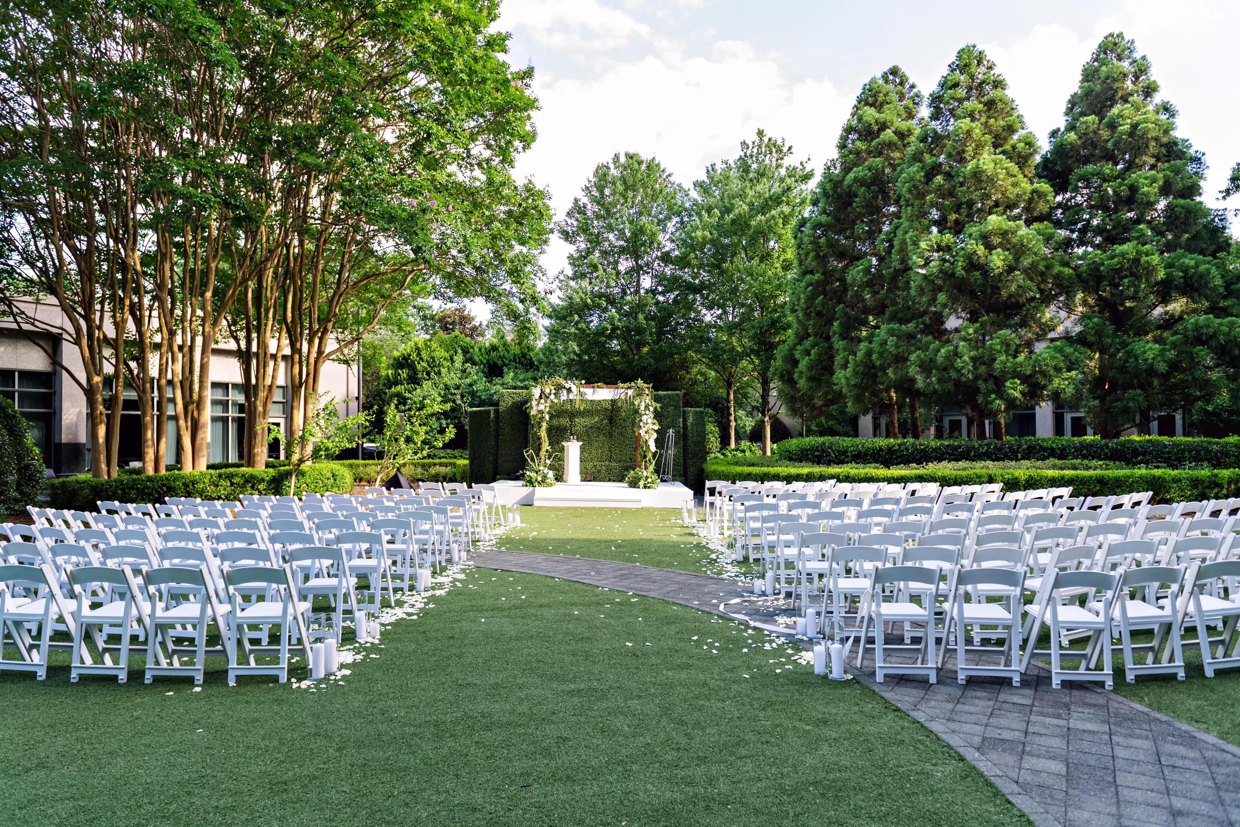 Adjacent to the Windsor Ballroom’s beautifully decorated pre-function space, this lush urban garden in the heart of Buckhead is ideal for outdoor ceremonies and receptions. Picture-perfect garden weddings become a reality, complemented by our elegant surroundings and incredible catering. Elevate your events with us, where every detail is designed to make your experience truly exceptional.