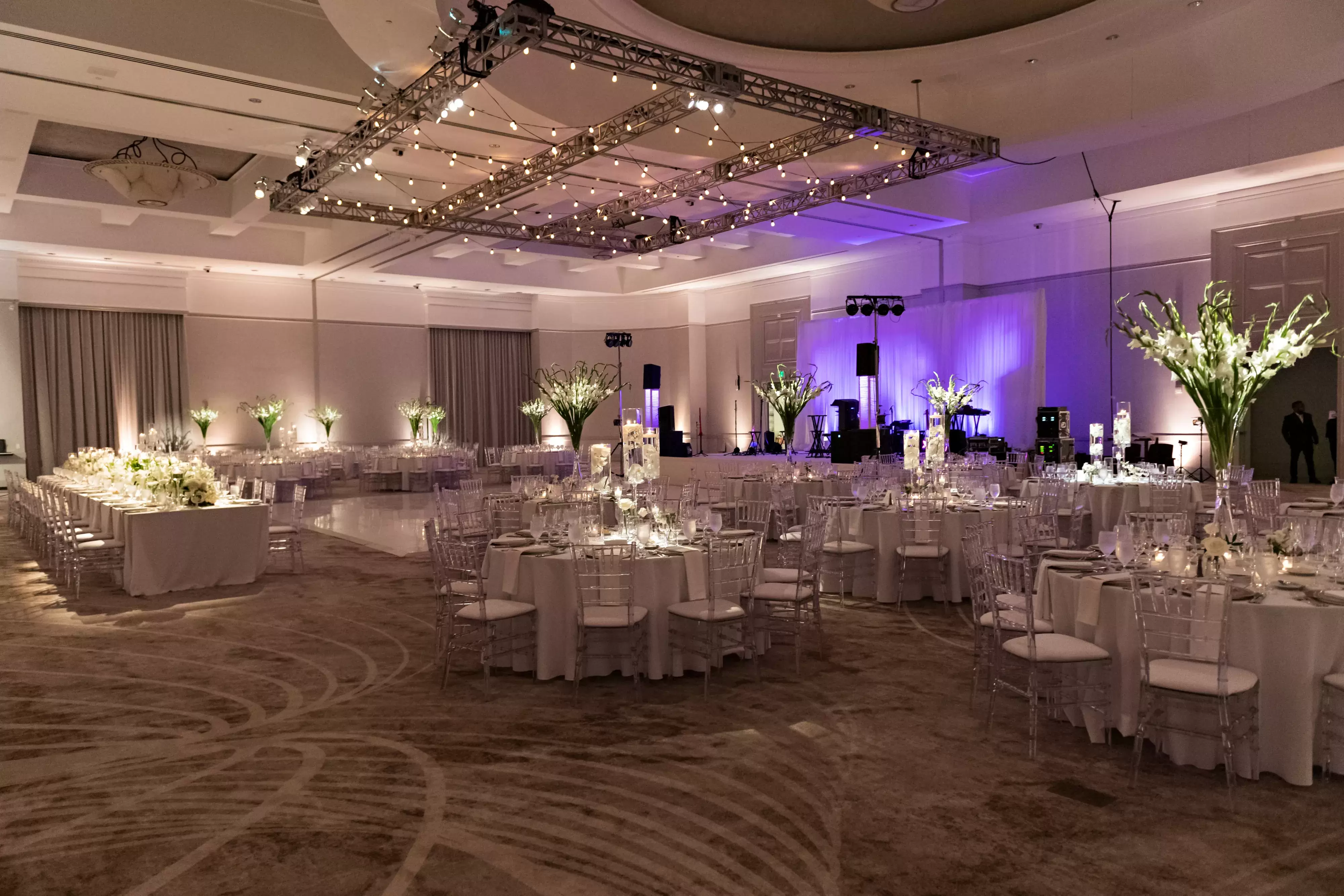 A regal Atlanta wedding venue, the Venetian Ballroom features rare Venetian crystal chandeliers and a beautiful wall of windows that lead to an intimate courtyard area, accessing the Windsor Garden.