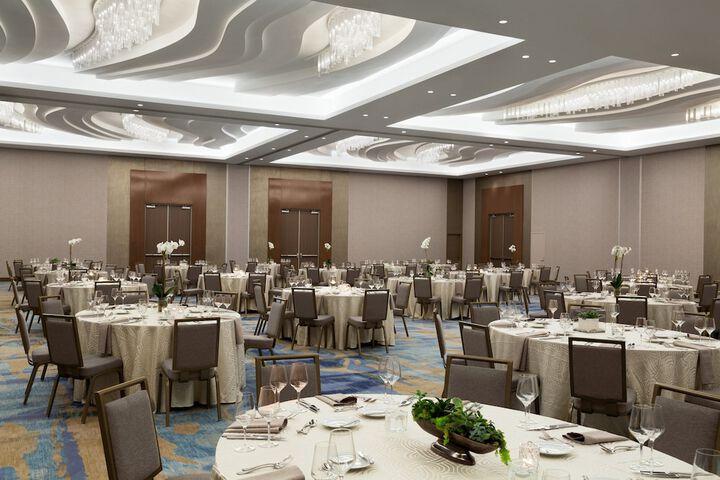 This 7646 square foot Ballroom with its 6,000 square foot of pre-function space you will surely be spoiled with our "Exclusivity promise" of one wedding on site per day! The large pre-function space is ideal for pre-dinner cocktails or late-night beverages.