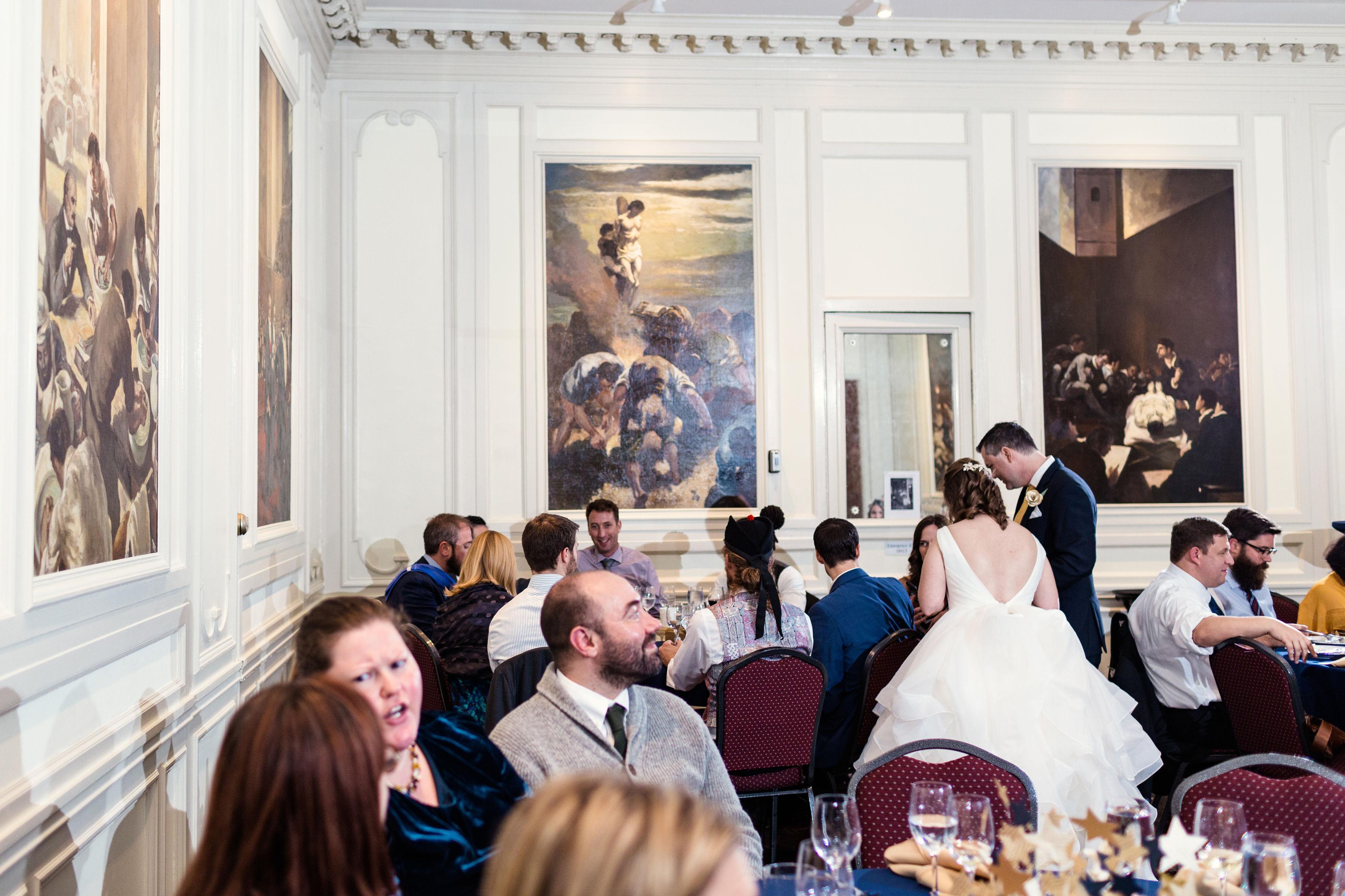 The walls are lined with enormous paintings depicting important moments in medical history. This room adjoins the kitchen and is perfect for a seated dinner.