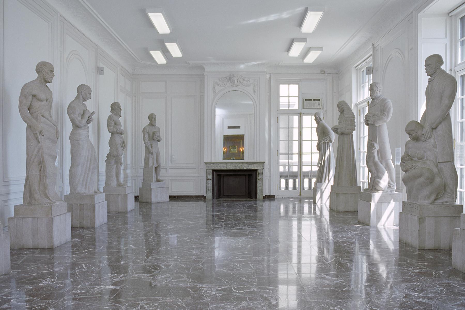This sun-filled room overlooks the sparkling blue waters of Lake Michigan. Statues of important medical figures line the walls, imparting a sense of history, elegance, and gravitas.