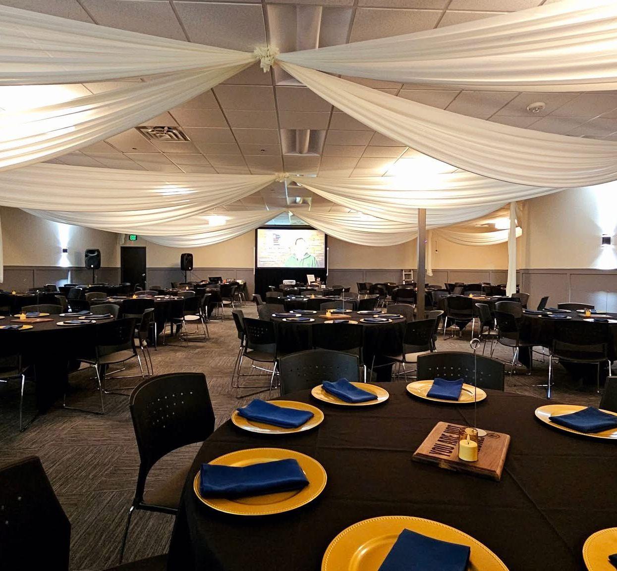 Our banquet hall offers a warm, inviting setting for your celebration, with a spacious lobby that’s perfect for welcoming guests or hosting a relaxed cocktail hour while the main space is transformed for your reception.