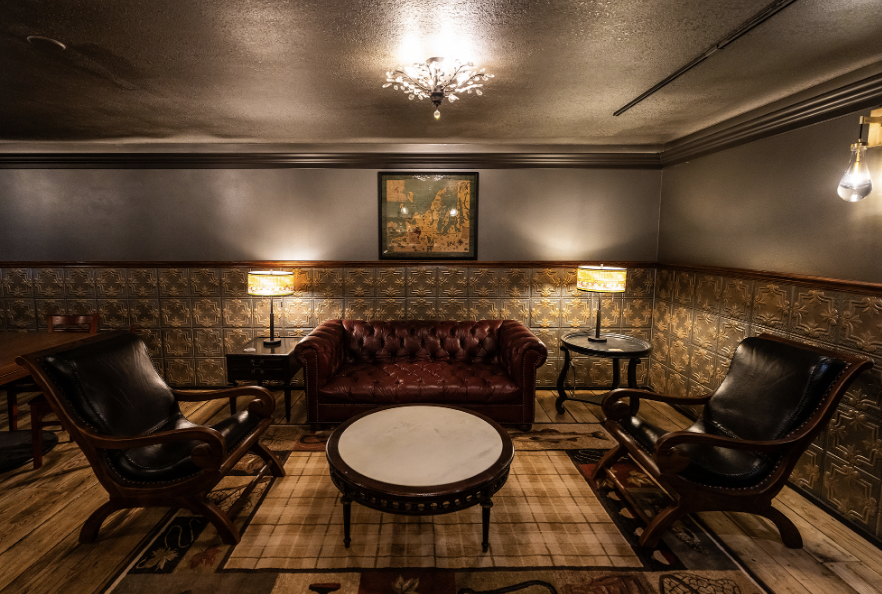 • An Iron Fish Event Coordinator to help with any questions and assist with the planning process for your event • Temperature controlled. • Wood tables • Dining chairs • Designated bar • Tufted leather sofa and 2 leather arm chairs. • Smart TV with 49 x 28 inch screen. • Sound system that accommodates guest provided music connectivity.