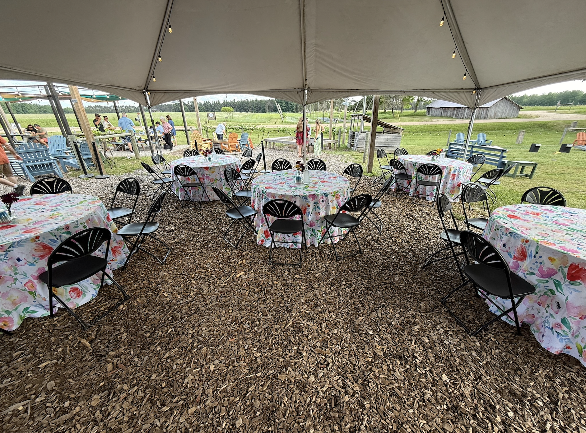 Step into our beautiful Courtyard and look forward to creating unforgettable memories. This outdoor tented space is perfect for smaller events. The Courtyard can accommodate groups of up to 60 people.