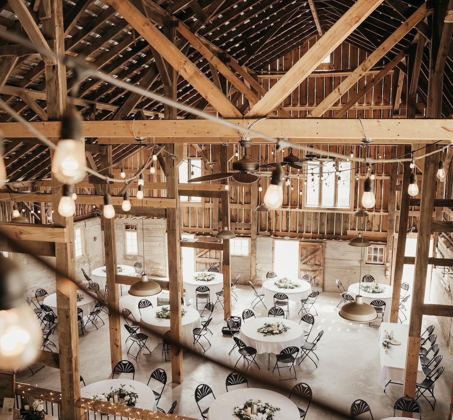 Our beautifully renovated historic timber-frame Barn Venue offers the perfect blend of rustic charm and modern convenience. Adorned with bistro lighting and a cozy upper loft, the 38 x 80-foot barn is fully ADA-compliant and comfortably seats up to 150 guests, with accommodations available for up to 200.